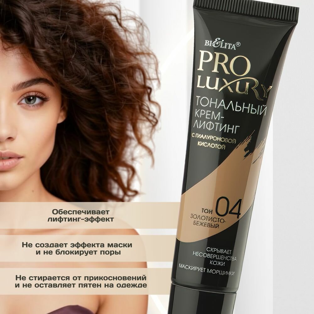 Белита Тональный крем-лифтинг PRO LUXURY с гиалуроновой кислотой, тон 04 золотисто-бежевый, 30 мл