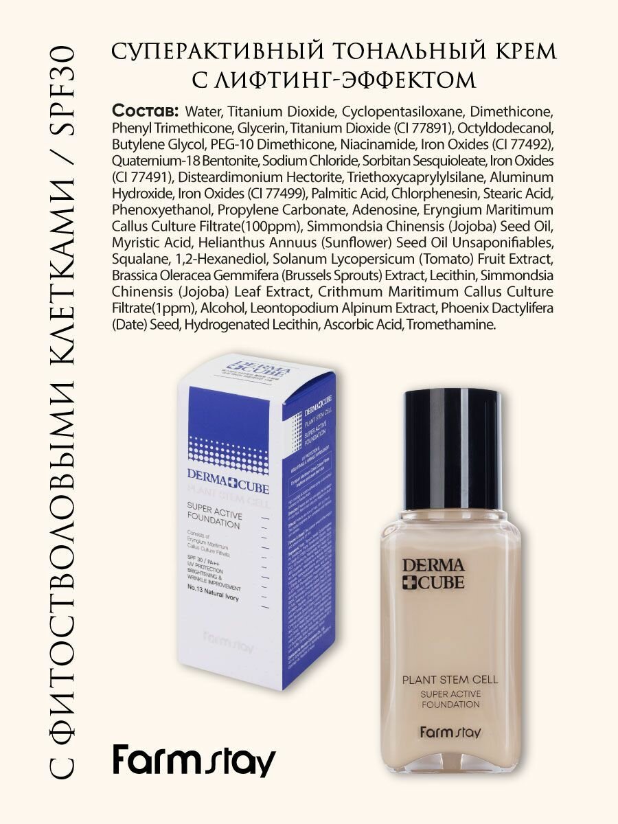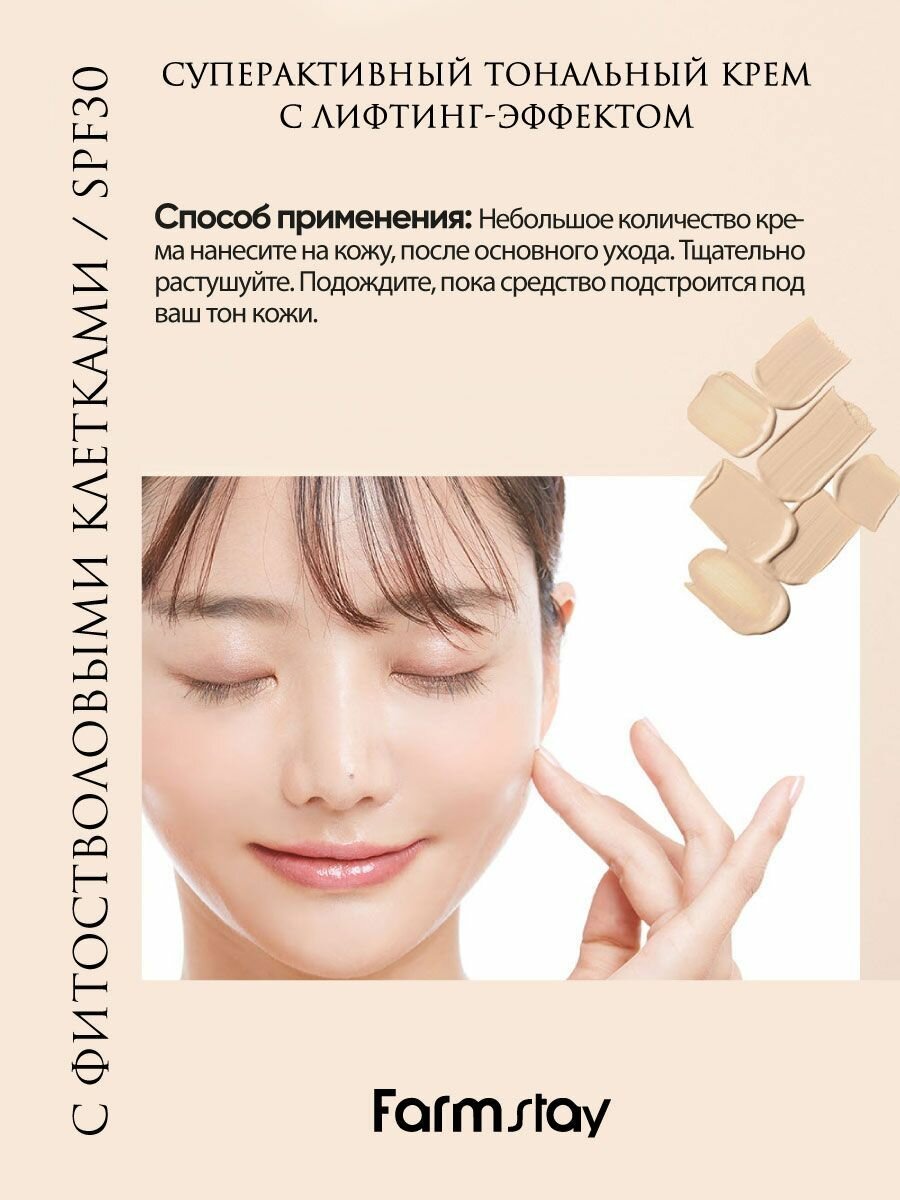 FarmStay Суперактивный тональный крем для кожи лица и шеи с лифтинг-эффектом и фитостволовыми клетками морского укропа #21, Натуральный бежевый, корейская косметика. 50мл интересное: