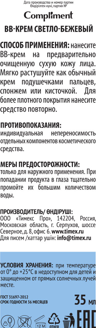Compliment All-In-One BB Крем для Лица 9 в 1, Светло-Бежевый, 35 Миллилитров интересное: