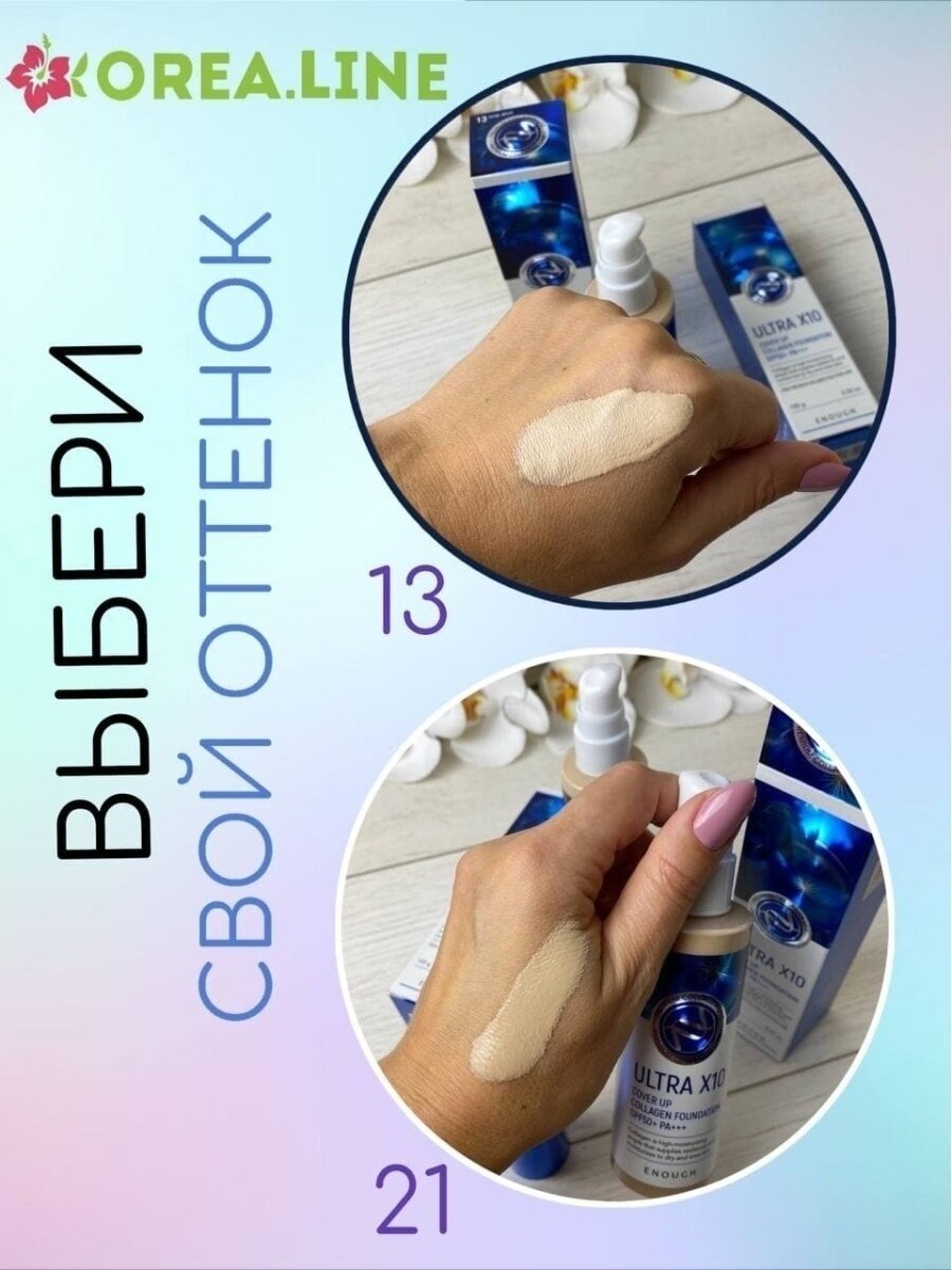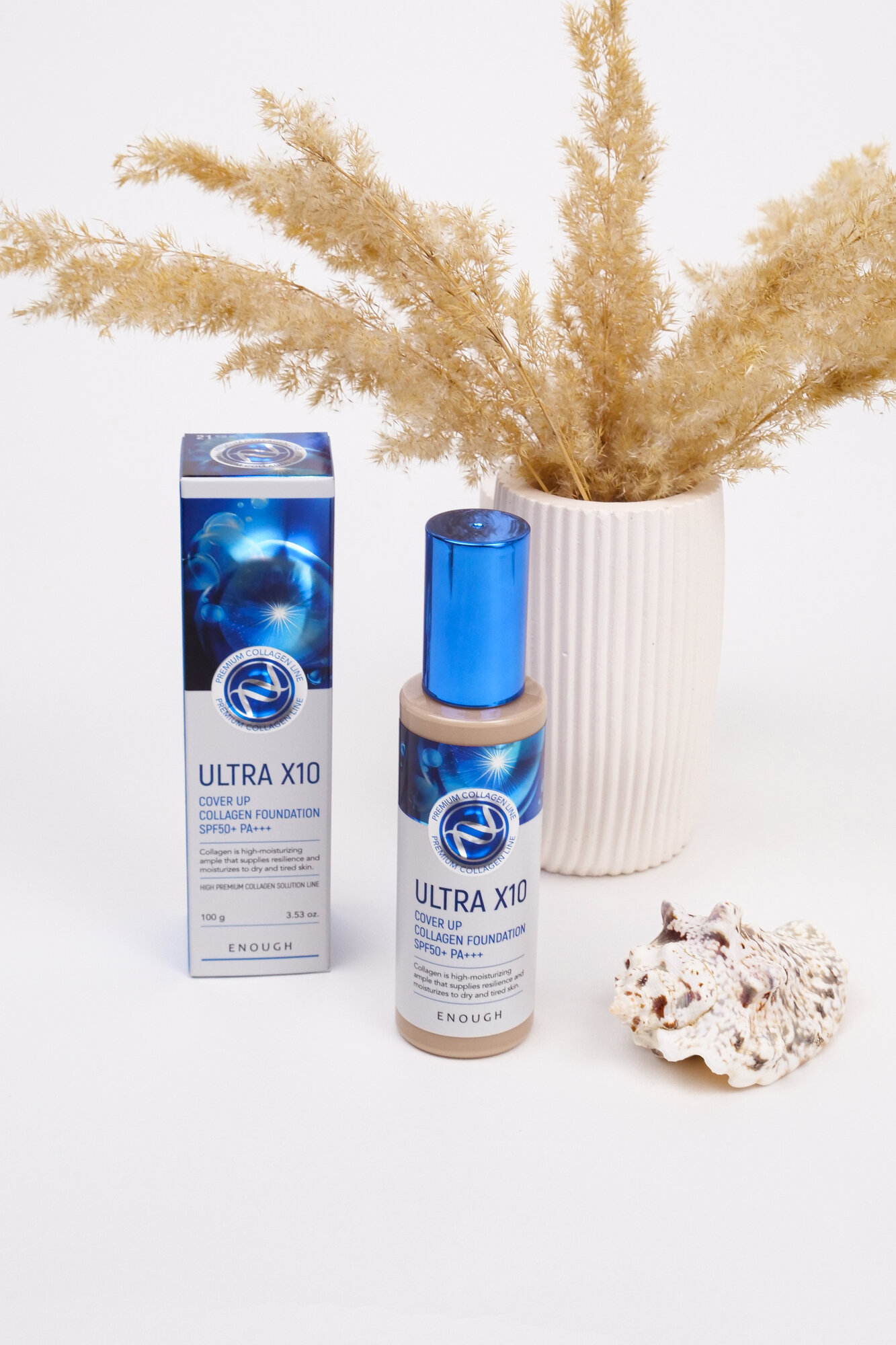 ENOUGH Тональный крем для лица солнцезащитный Ultra X10 Cover Up Collagen Foundation SPF50+ PA+++ тон 13 100 мл. интересное:
