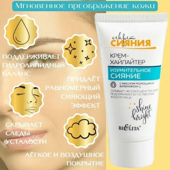 Bielita Секрет сияния Крем-хайлайтер Изумительное сияние с маслом морошки и витамином С интересное:
