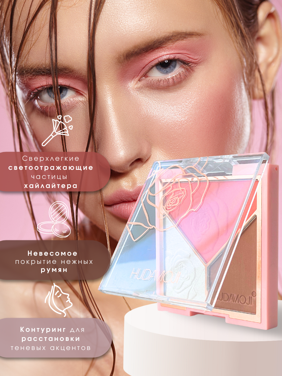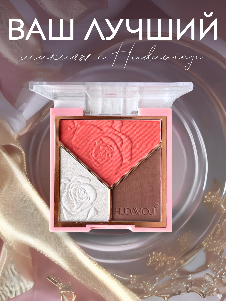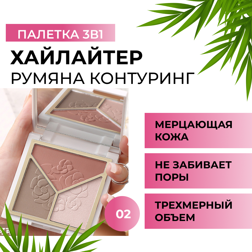 Купить Палетка 3 в 1 для макияжа (хайлайтер, румяна, контуринг), тон 02