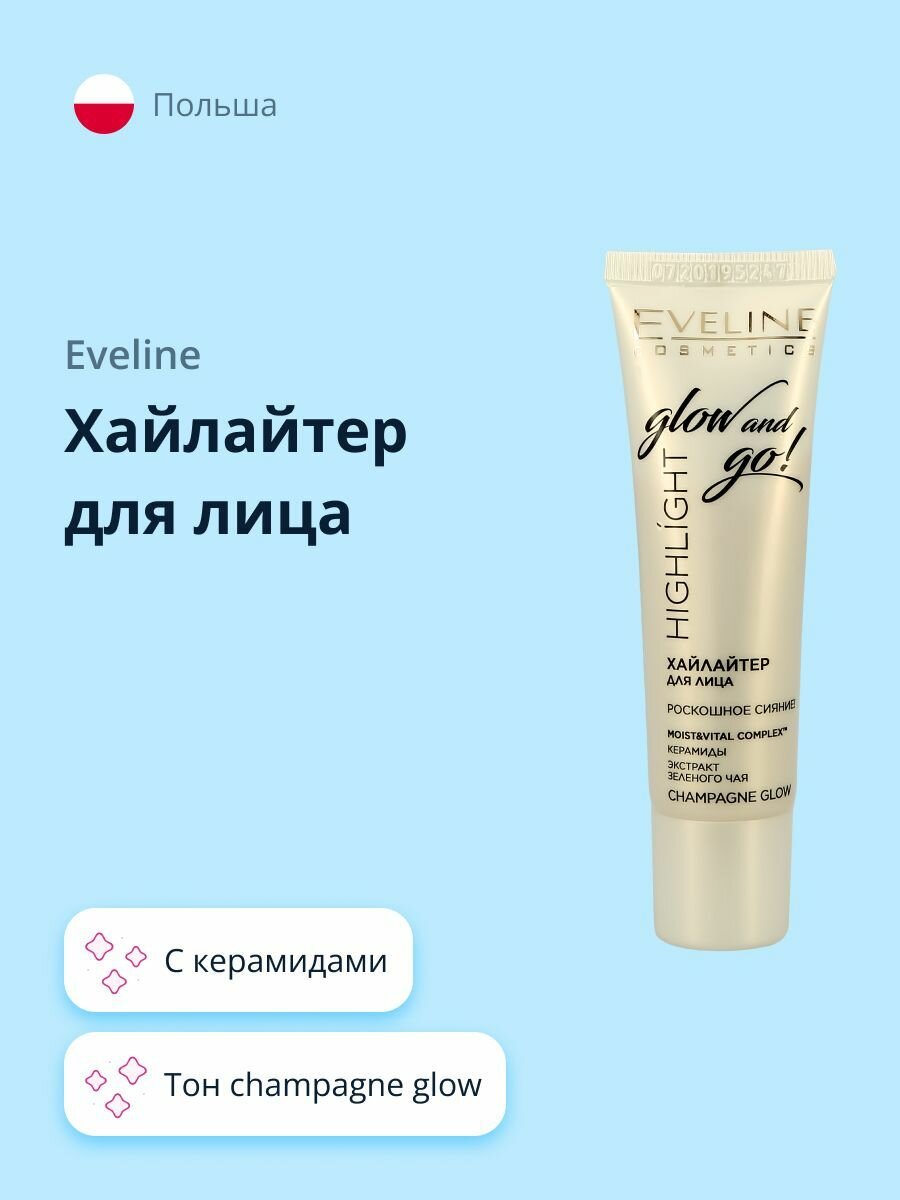 Купить Eveline Highlight Glow and Go! Хайлайтер для лица, champagne glow, 20 мл