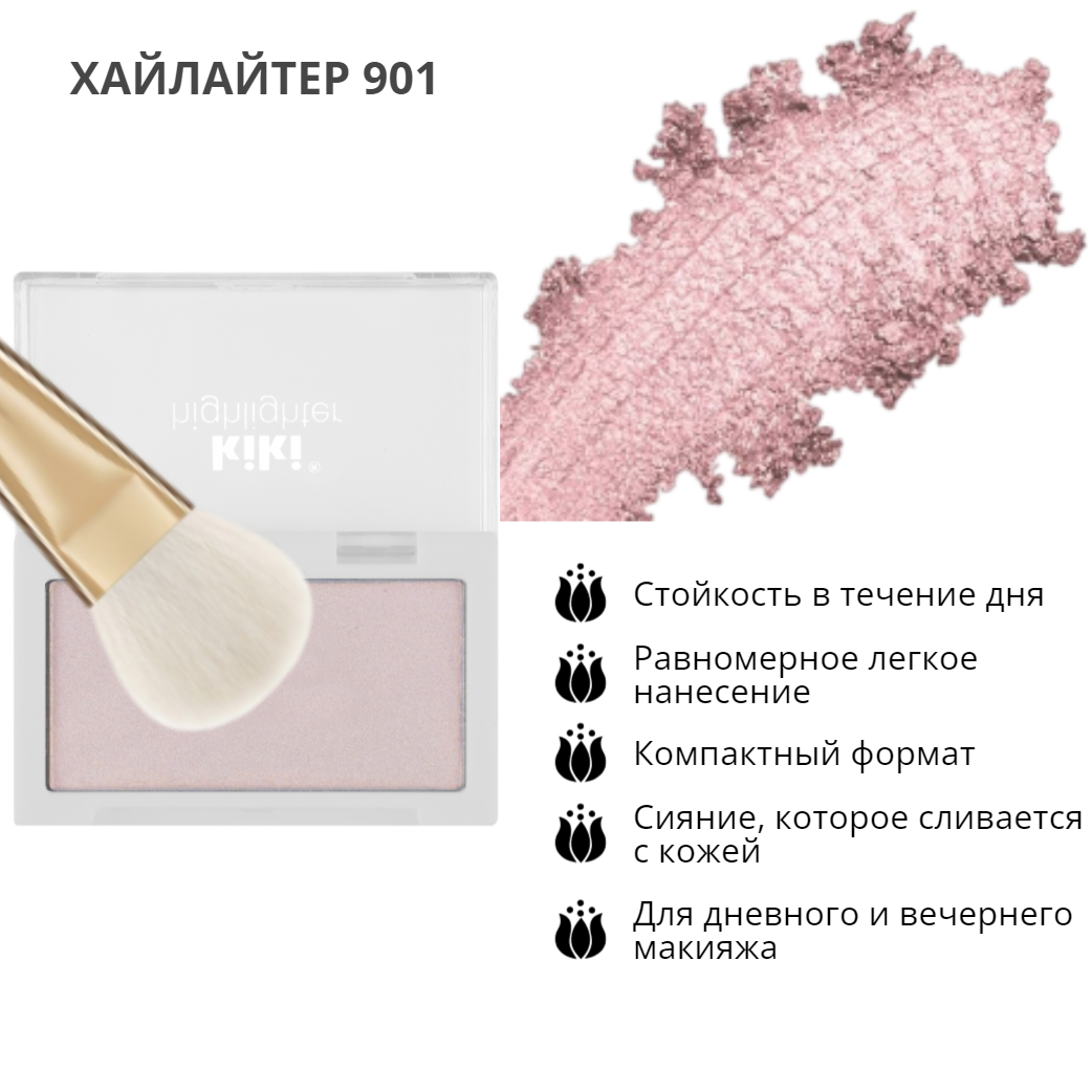 Хайлайтер для лица и тела kiki HIGHLIGHTER тон 901 розовое сияние, сухой шиммер, рассыпчатый с перламутровым сиянием и эффектом переливания, кики
