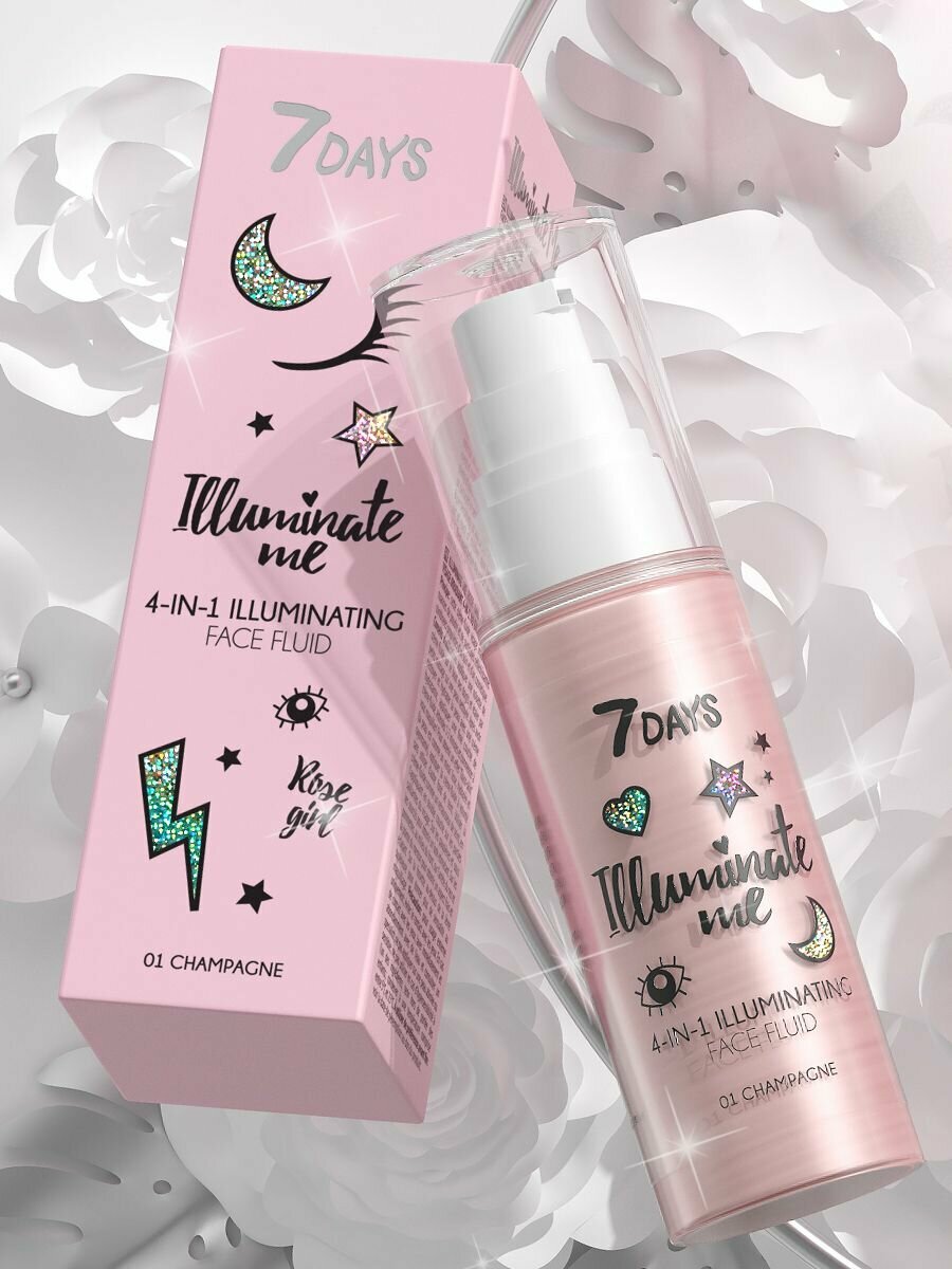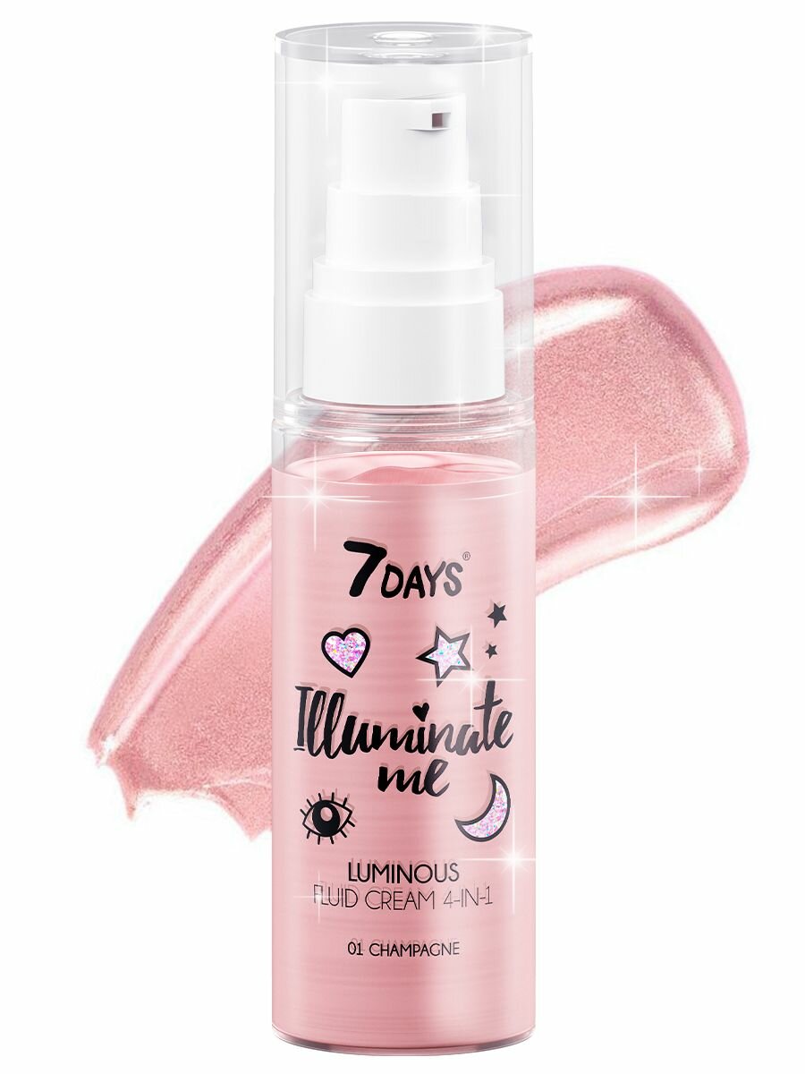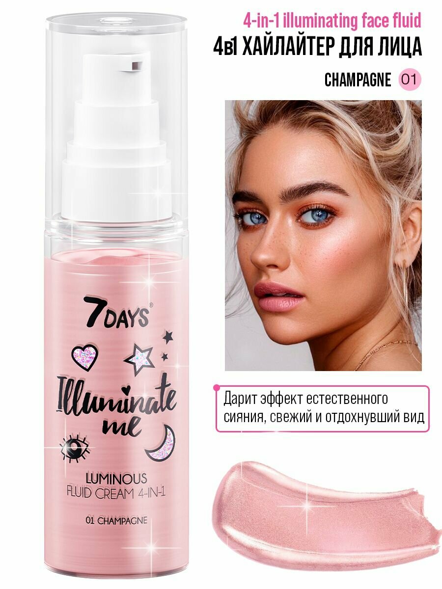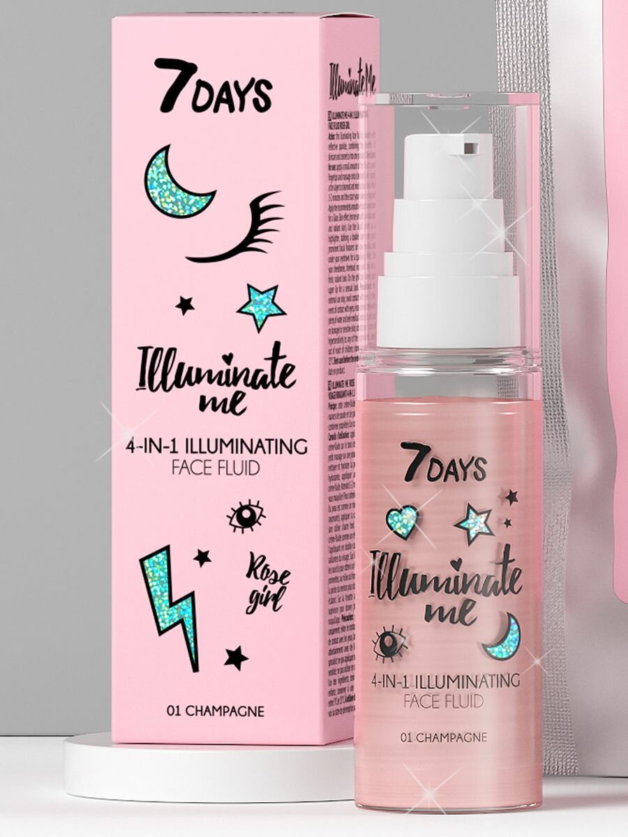 7DAYS Хайлайтер для лица, жидкий бронзер и скульптор для лица, база под макияж 4в1 ILLUMINATE ME ROSE GIRL 01 Champagne