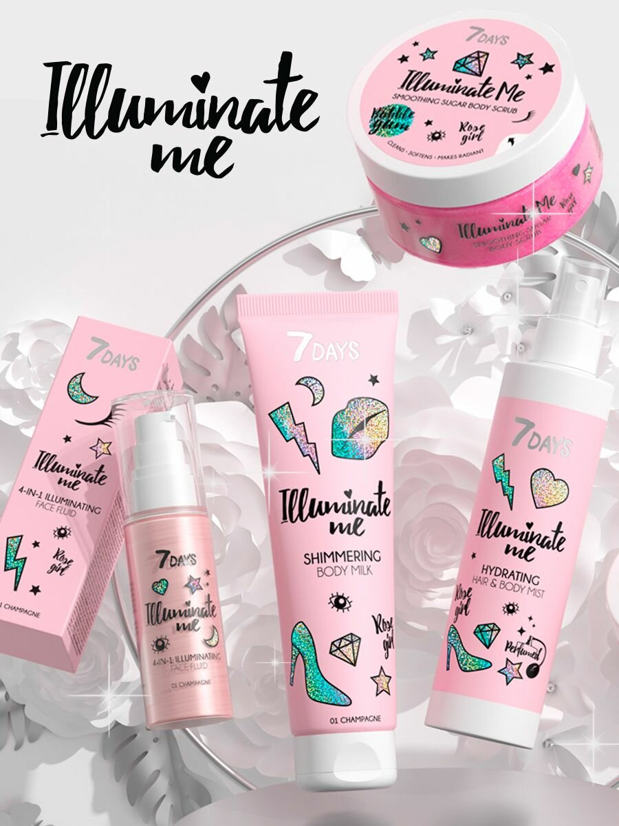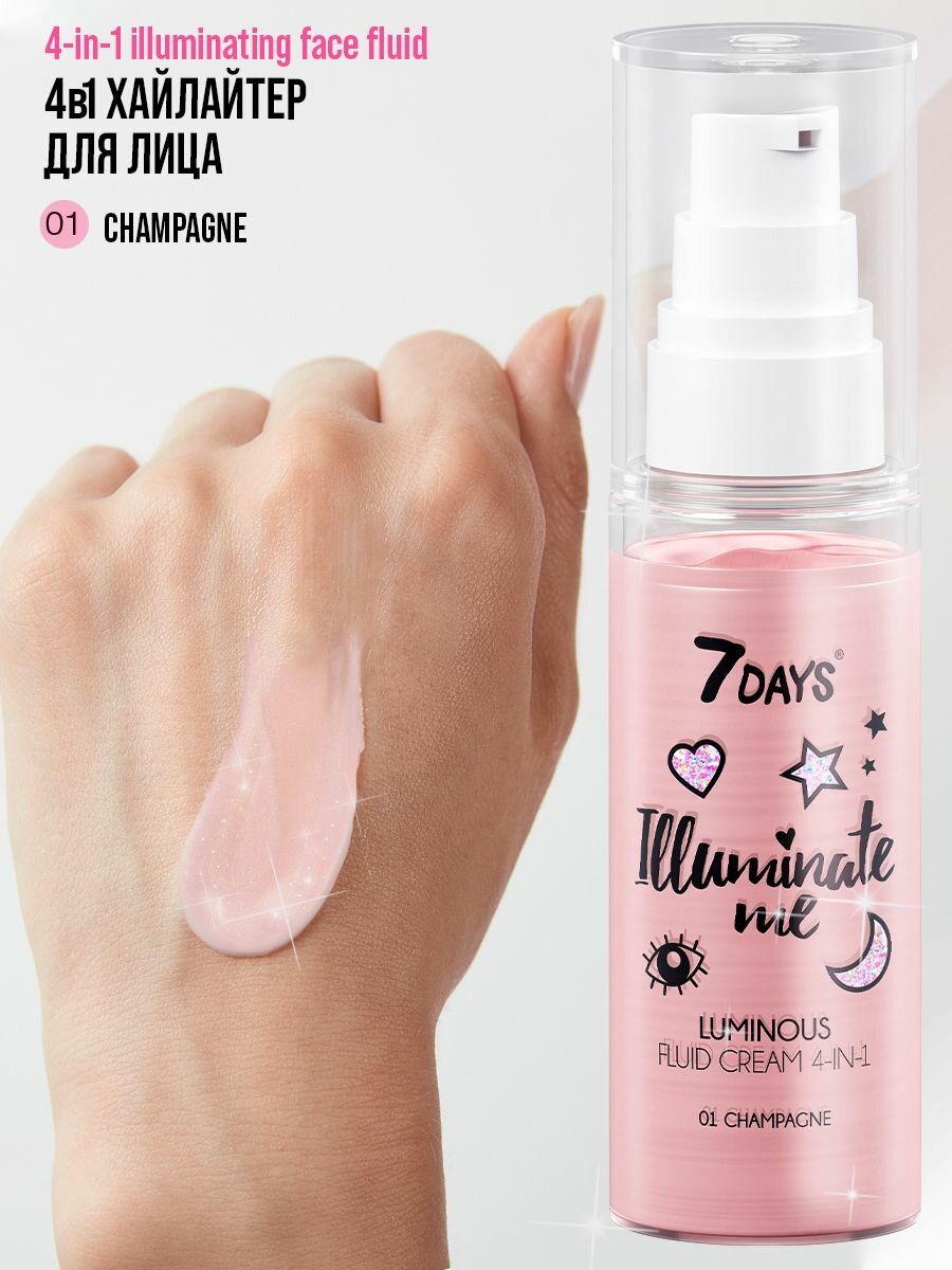 Купить Хайлайтер для лица и тела жидкий 4в1 7DAYS крем увлажняющий, база под макияж, сияющий флюид, бронзер ILLUMINATE ME ROSE GIRL 01 Champagne