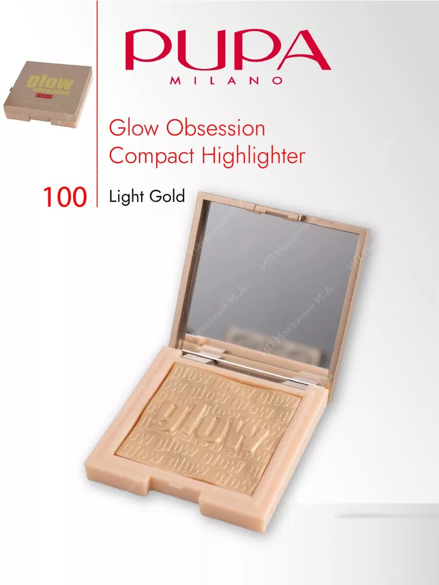 PUPA Хайлайтер для лица компактный GLOW OBSESSION №100, светлый золотой интересное: