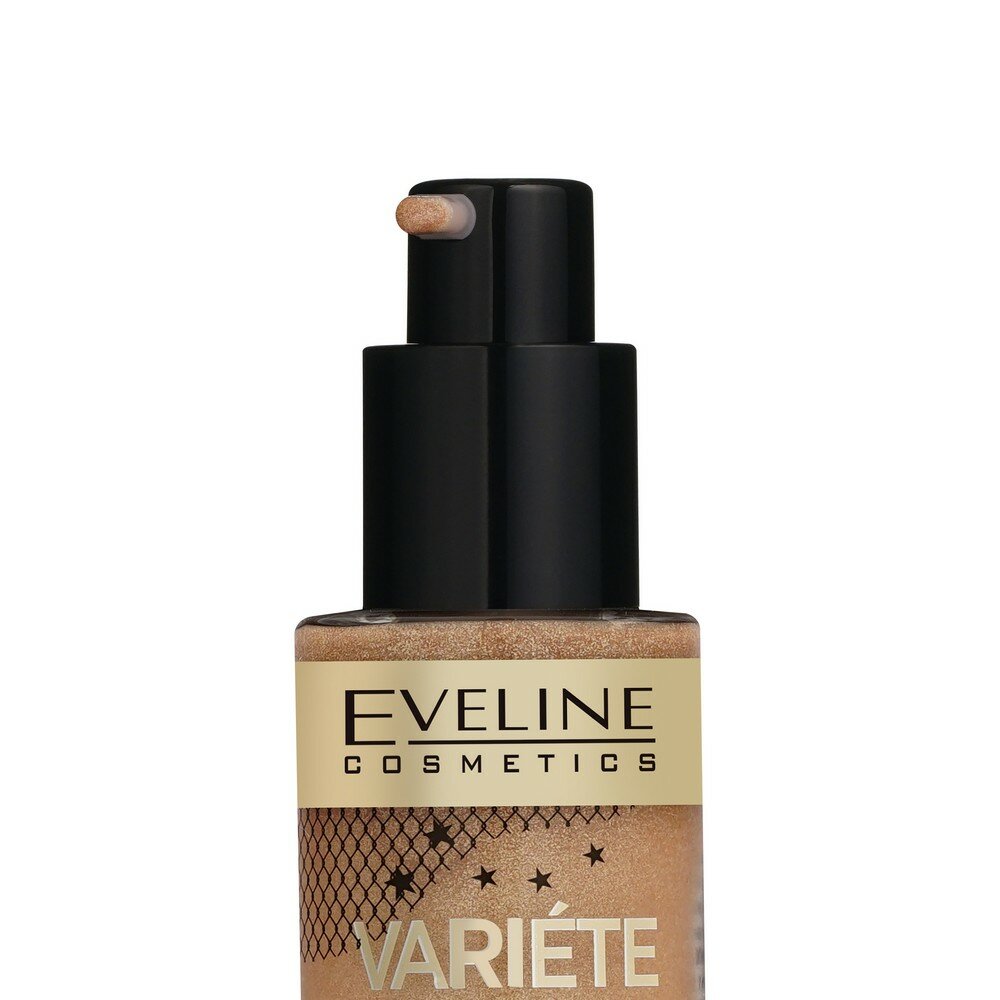 Шиммер для лица и тела EVELINE VARIETE жидкий с экстрактом ириса тон № 01 champagne gold, 30мл