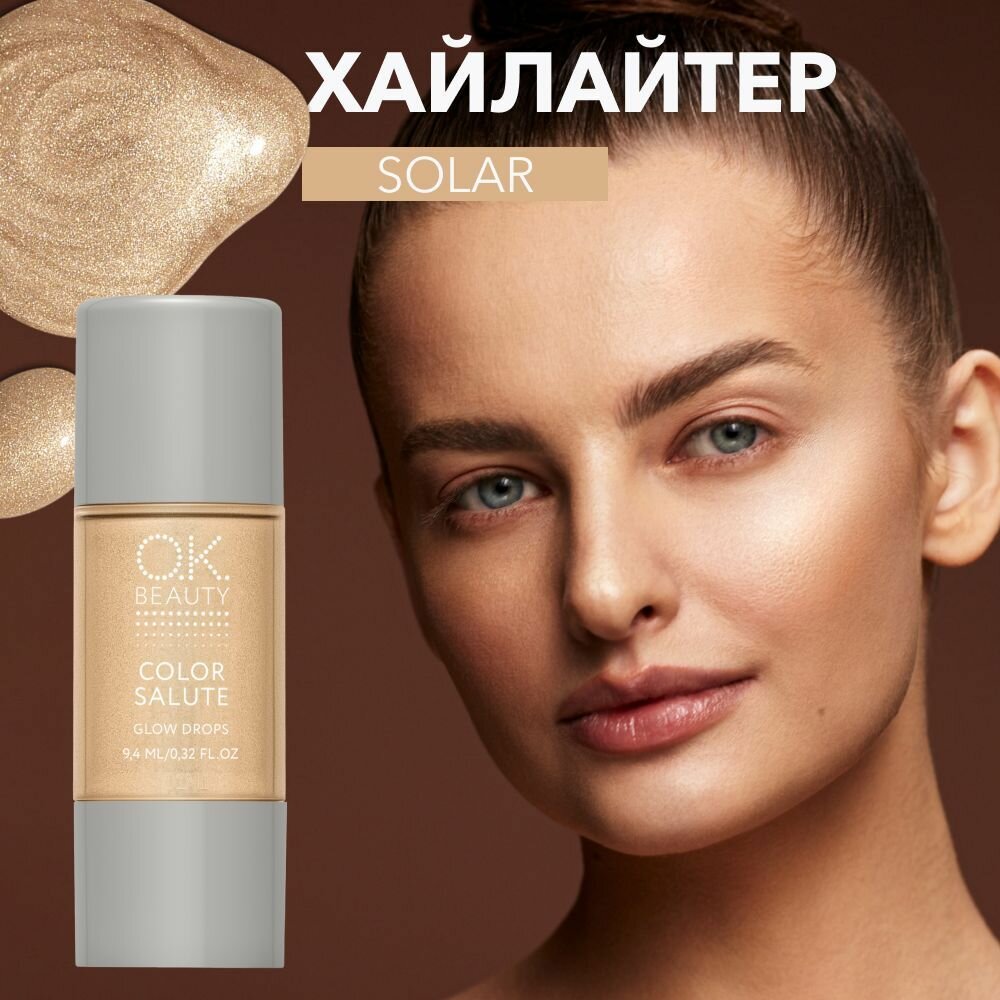 O.K.BEAUTY Хайлайтер для лица и тела Color Salute Glow Drops, 9,4 мл, Solar