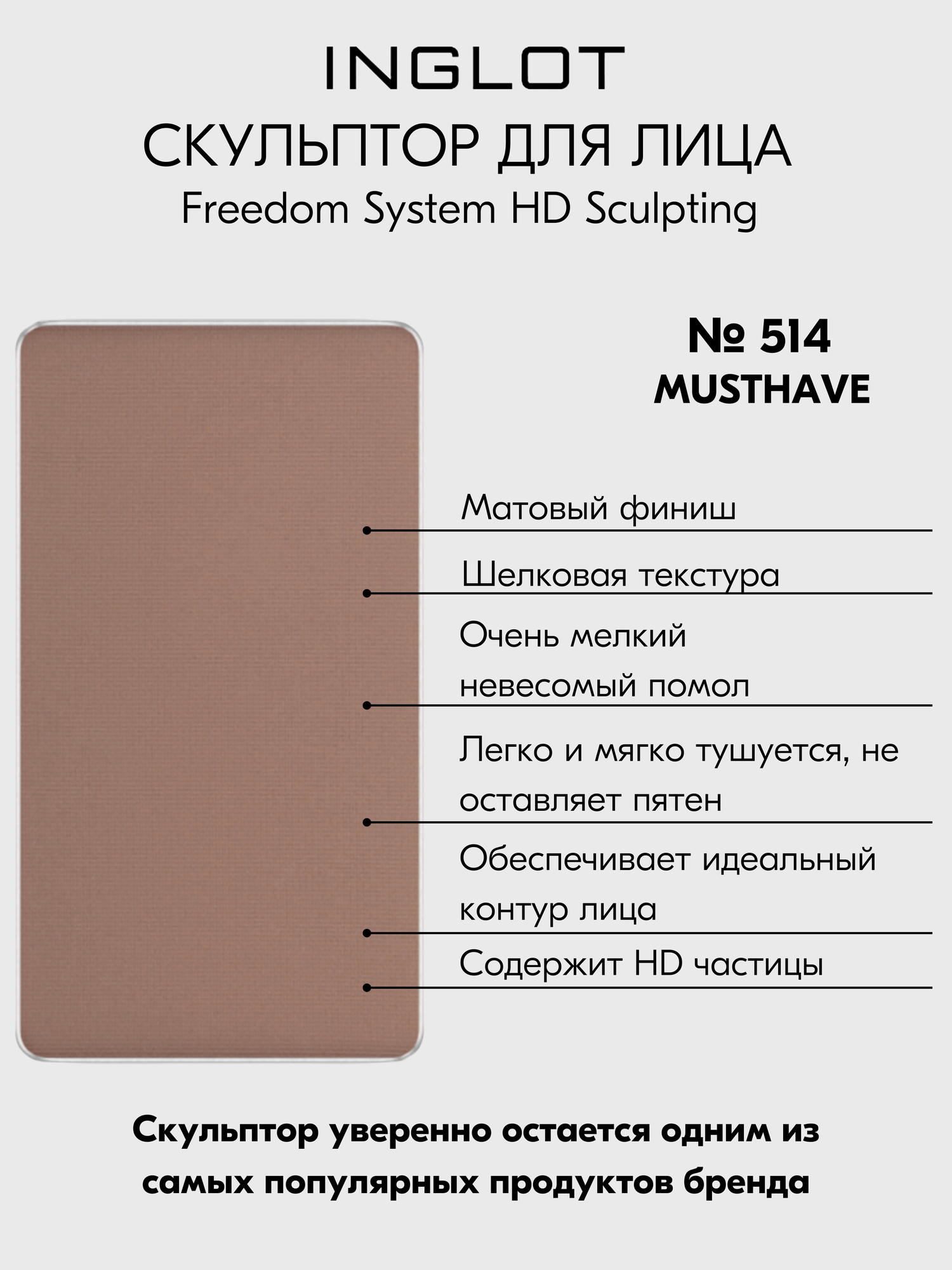 Скульптурирующая пудра для лица HD INGLOT рефил системы FREEDOM, контуринг для макияжа сухой компактный №514