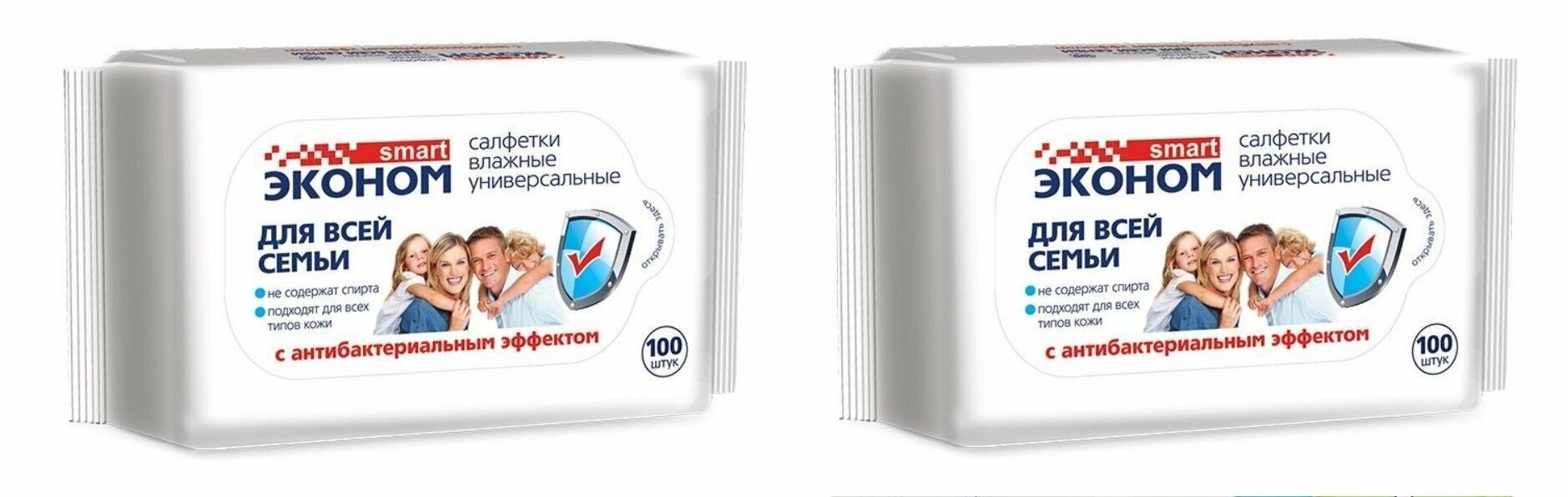 Купить Smart эконом, салфетки влажные, эконом, антибактериальные, для всей семьи, 100 шт, 2 уп