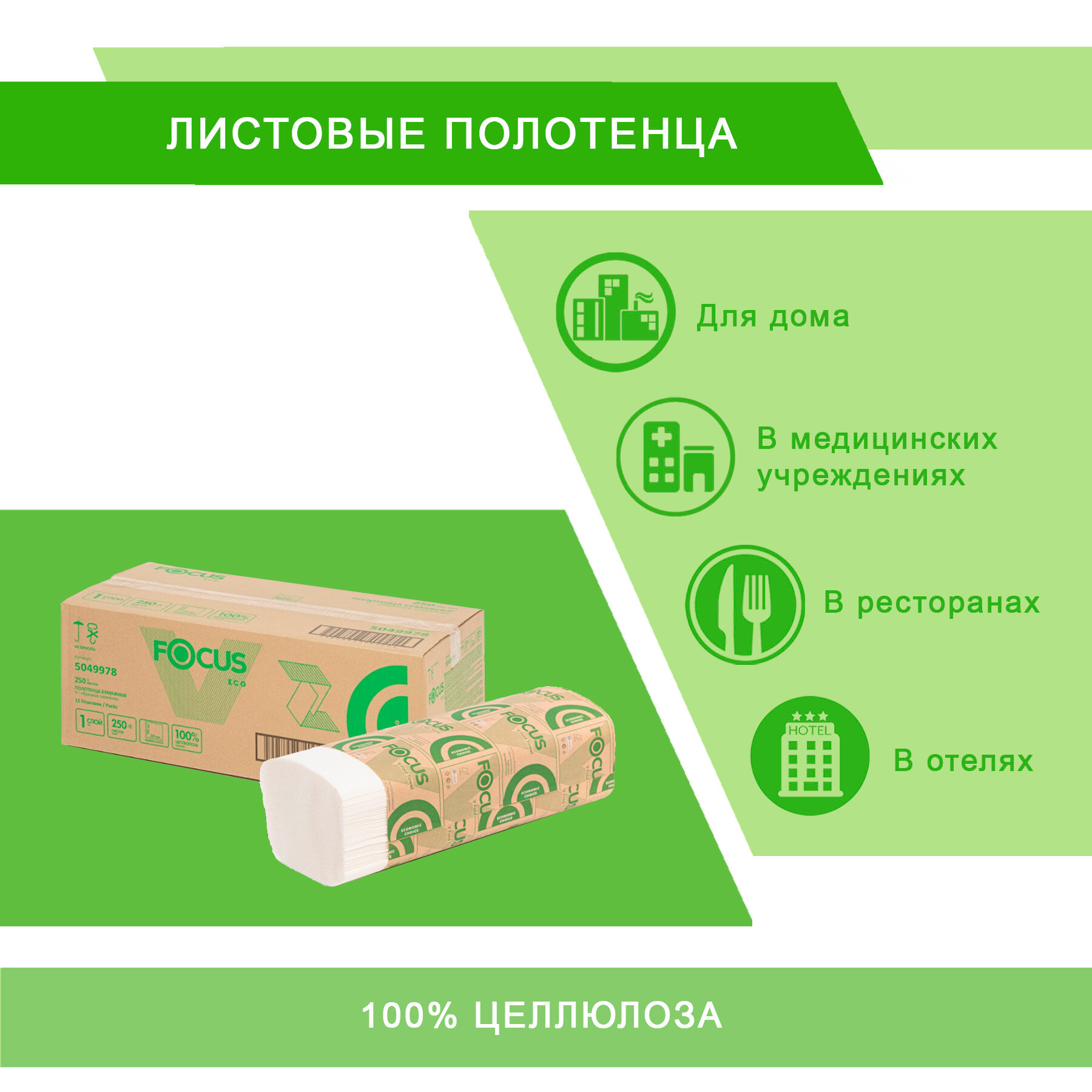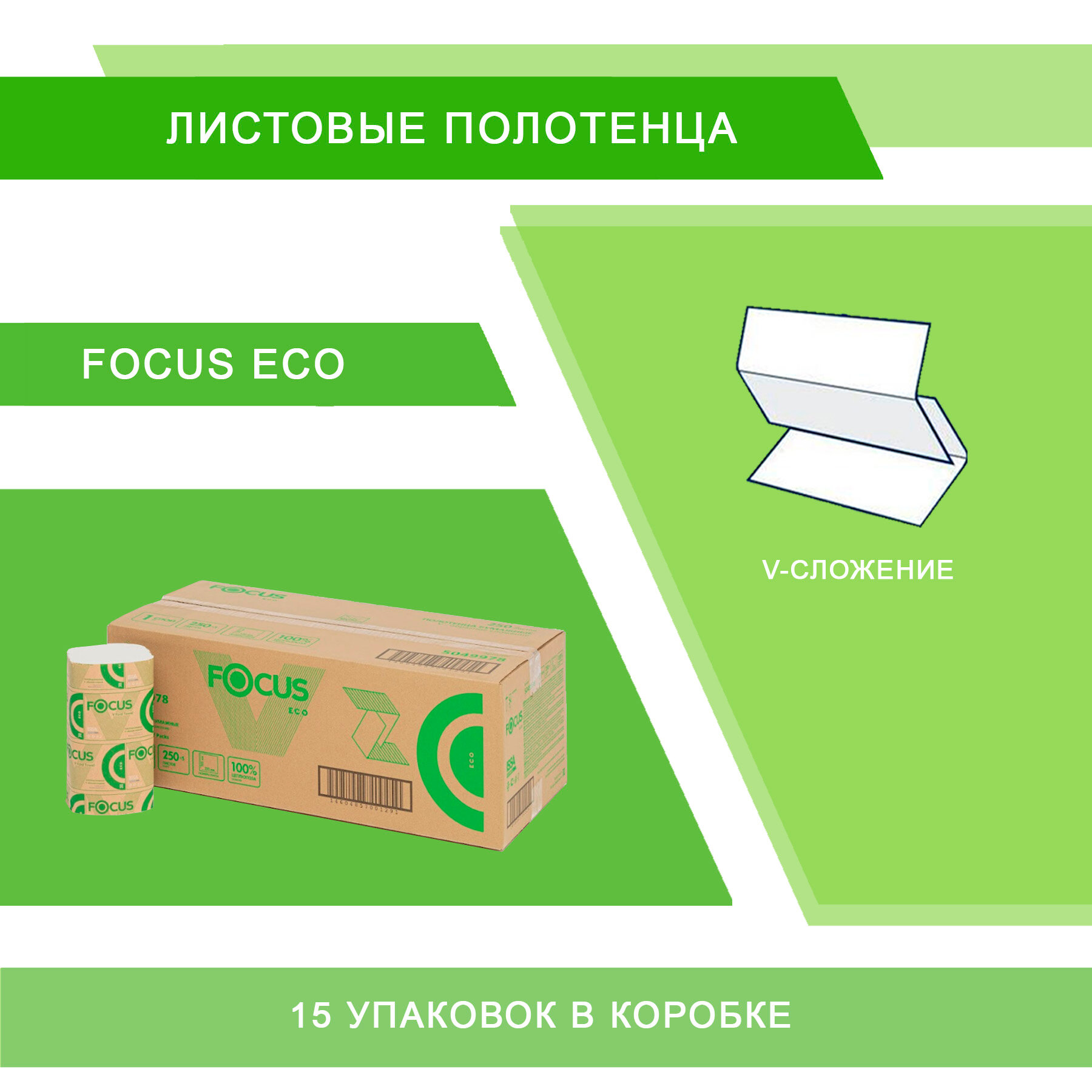 Полотенца бумажные Eco V(ZZ)-сложения 1 слой 15 пачек по 250 л, 23х20.5, Focus Eco 5049978