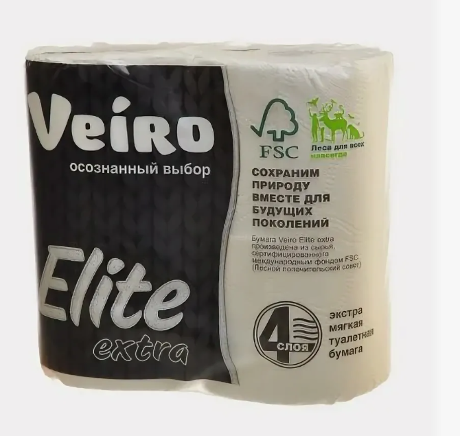 Veiro Туалетная бумага Elite, 4-х слойная, 4 рулона в уп, 1 уп
