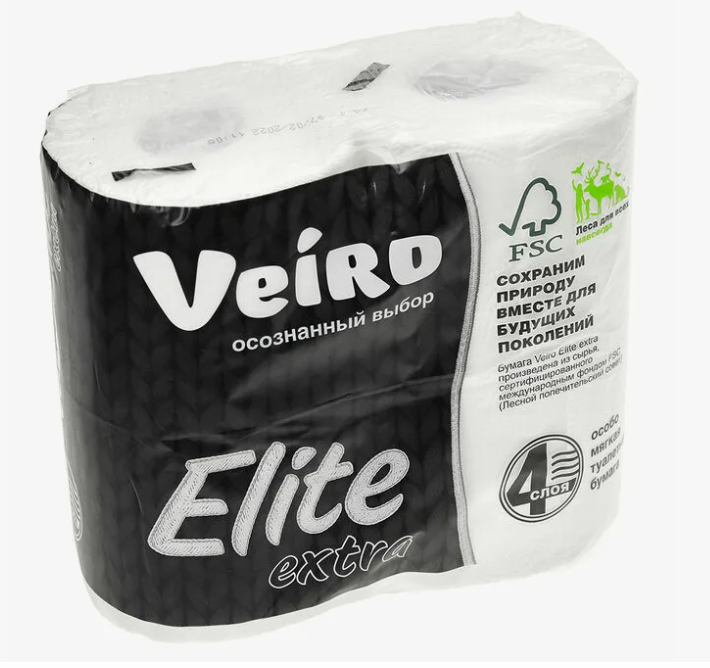 | Подробная комплектация | Veiro Туалетная бумага Elite Extra 4 слоя, 4 рулона, Белая - 1 упаковка |