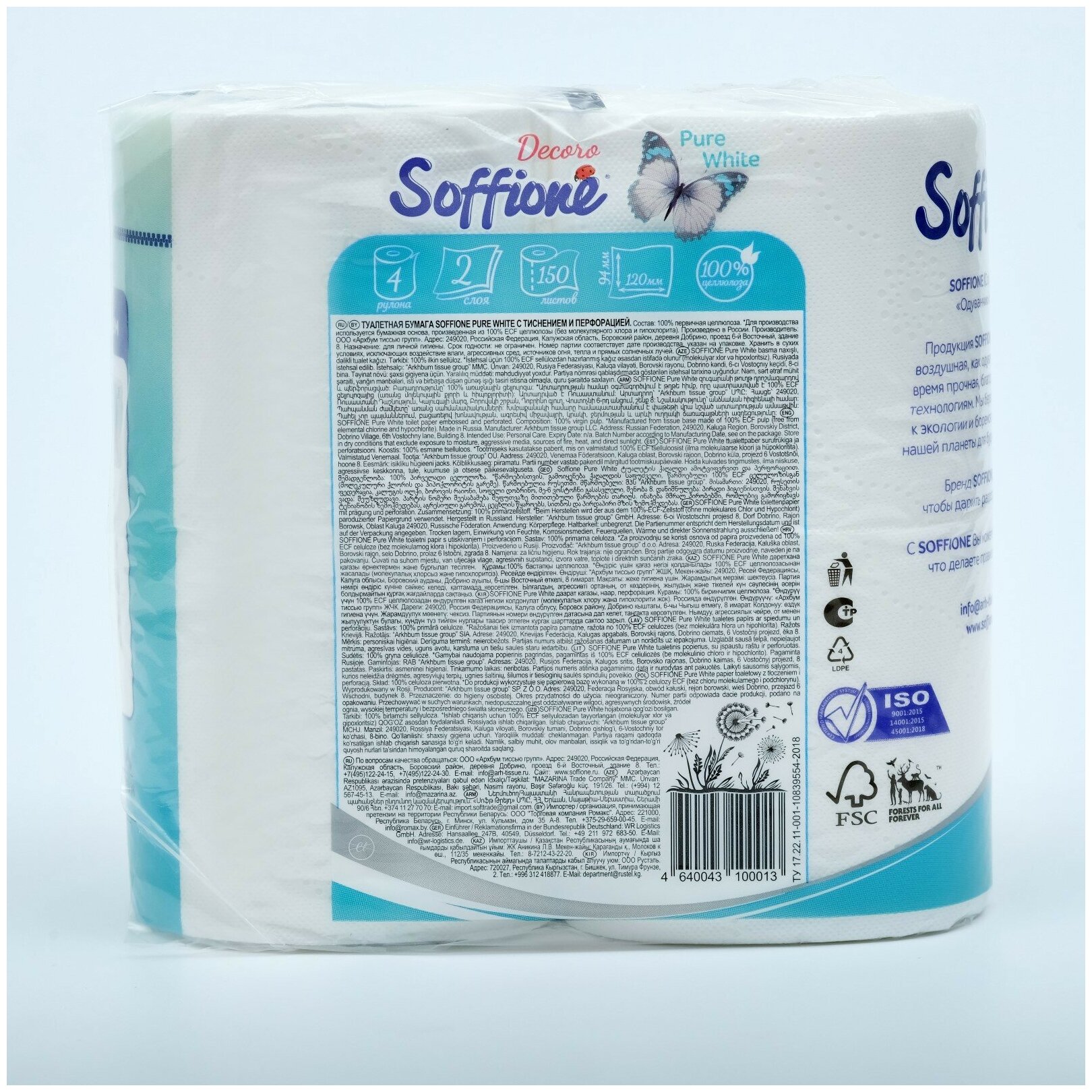 Туалетная бумага Soffione Pure White белая двухслойная 4 рул. интересное: