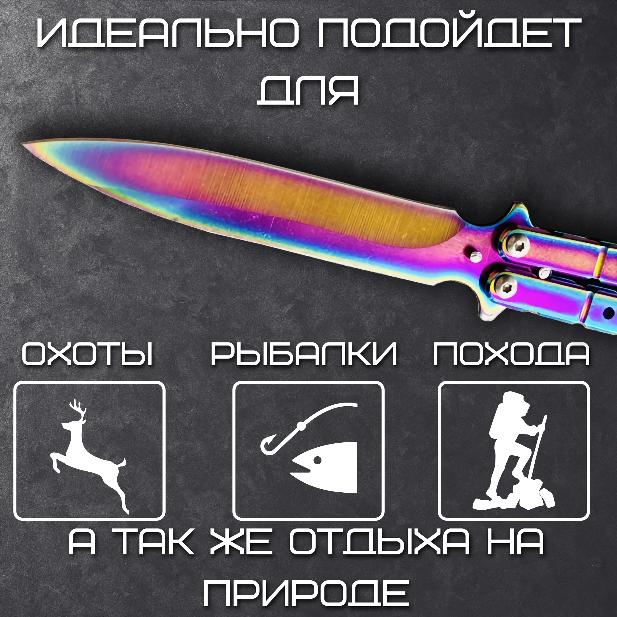 Нож бабочка, балисонг складной градиент , длина лезвия 8,9 см. интересное: