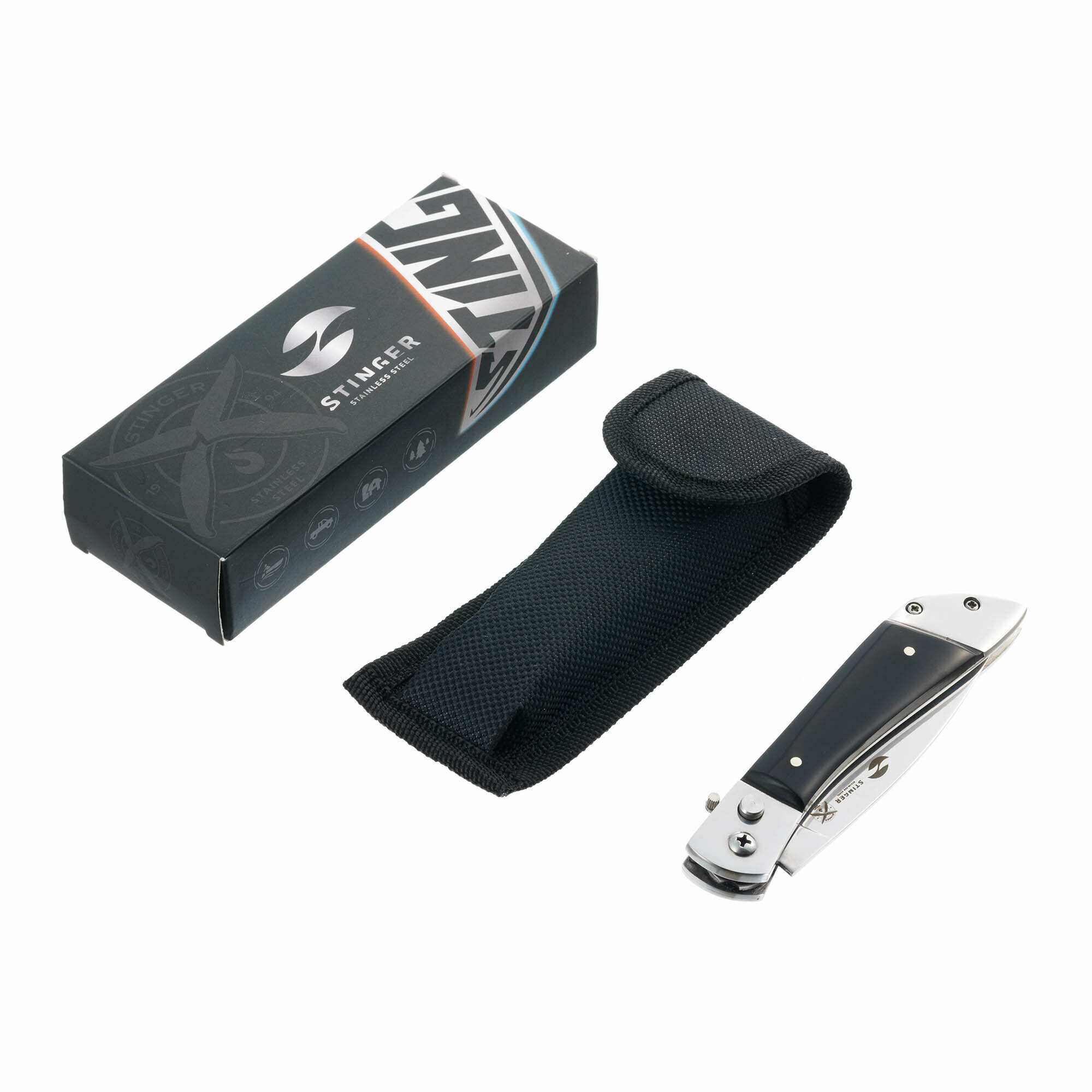 Купить Нож складной STINGER, клинок 90 мм, рукоять из нержавеющей стали и смолы чёрного цвета, в нейлоновом чехле FB1316