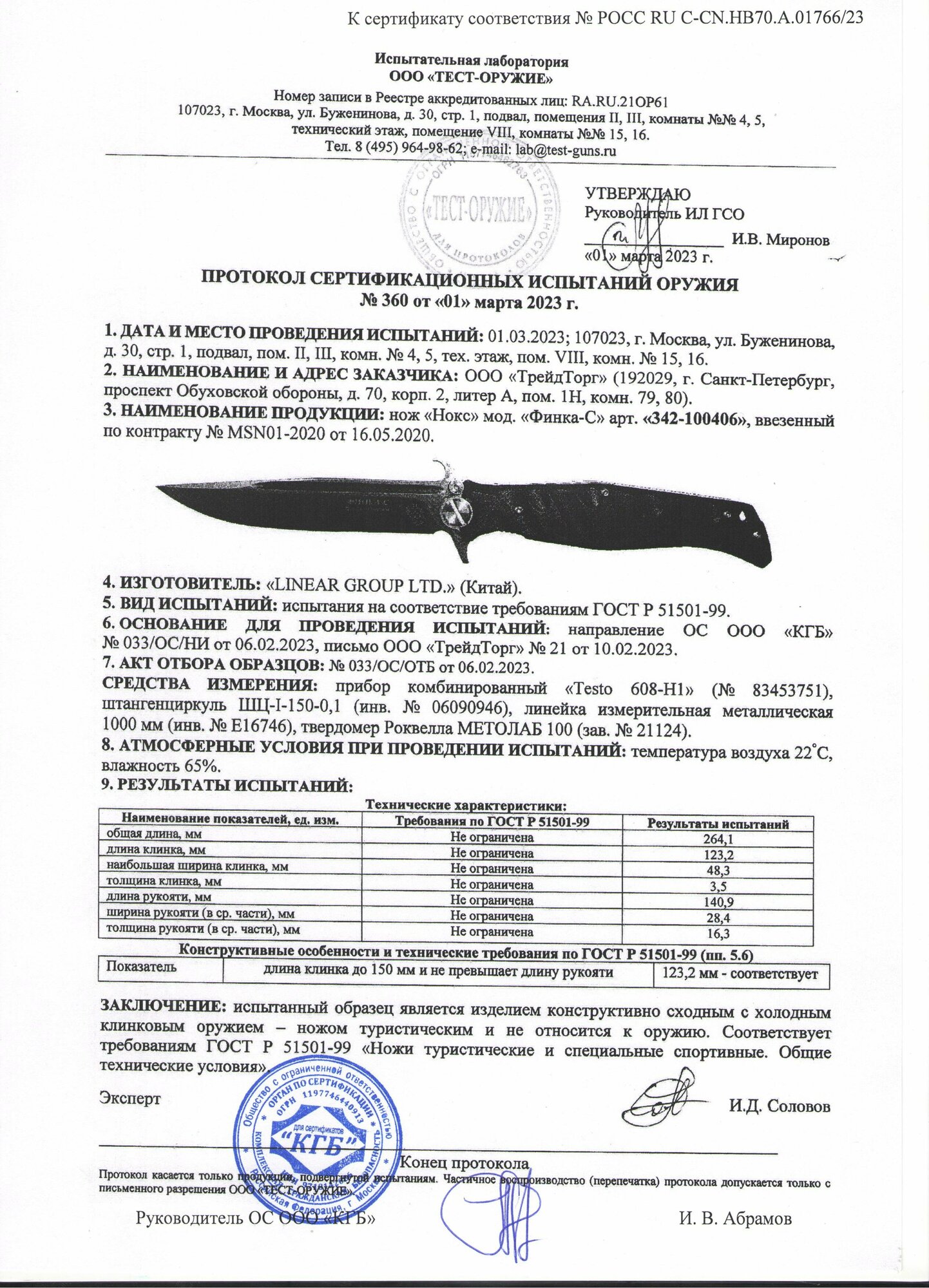 | Характеристики ножа | |