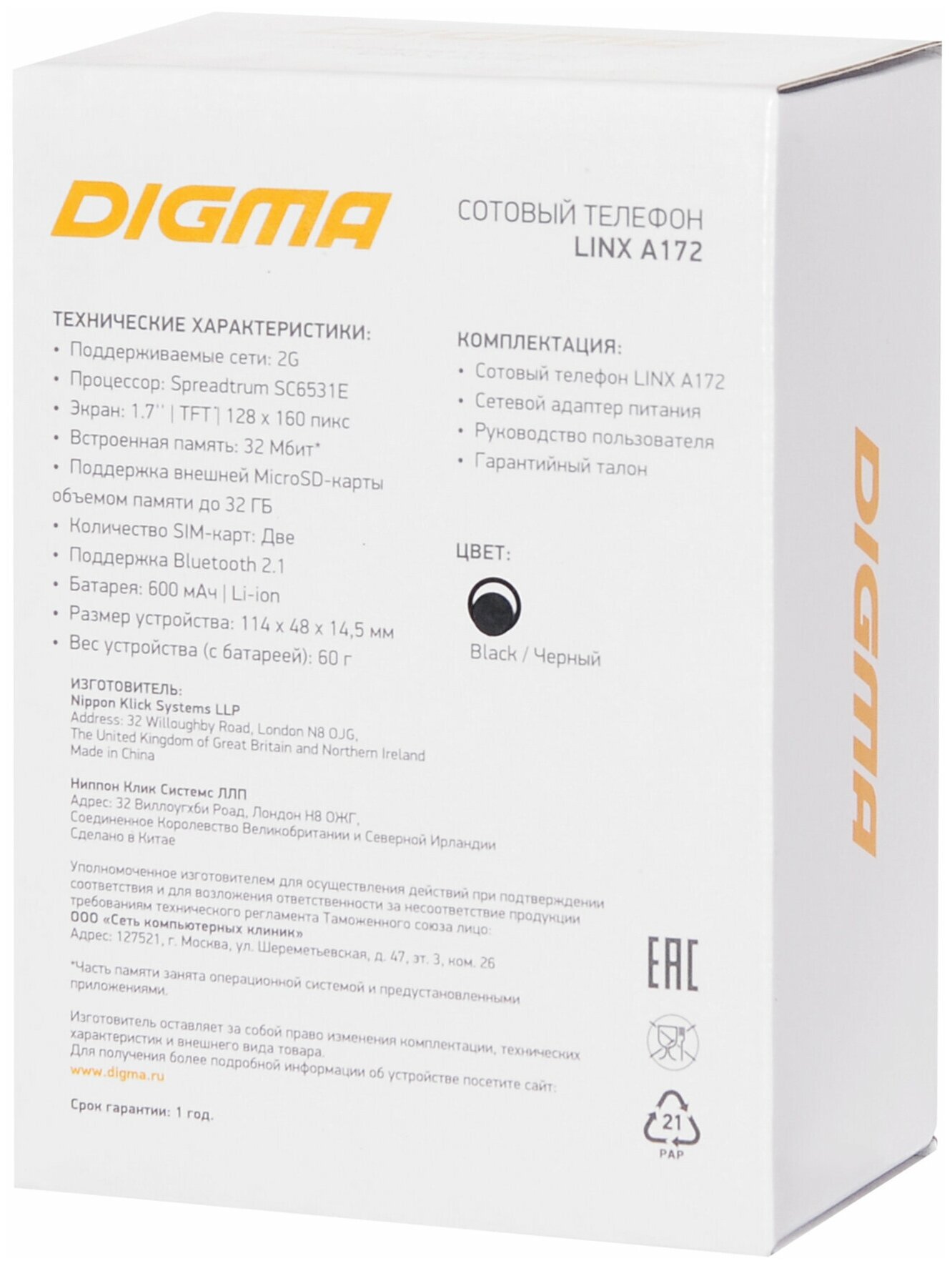 Ниже Вы можете прочитать отзывы на Телефон Digma A172 Linx 32Mb черный моноблок, ознакомится с подробными характеристиками, посмотреть интересные обзоры и фотографии на Телефон Digma A172 Linx 32Mb черный моноблок.