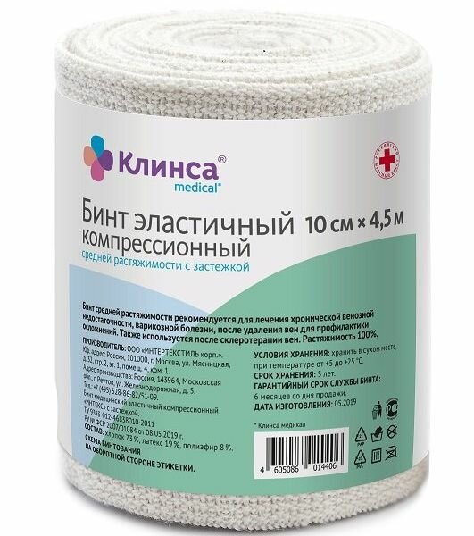 Бинт эластичный средней растяжимости Клинса 450x10см интересное: