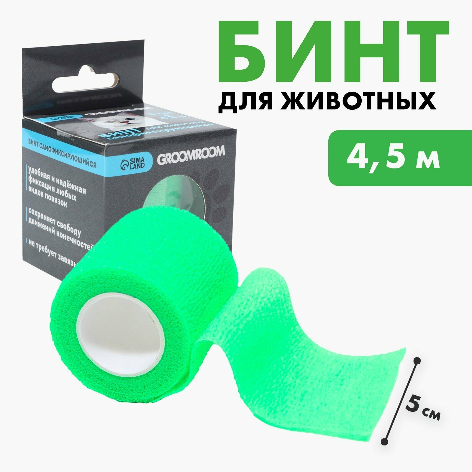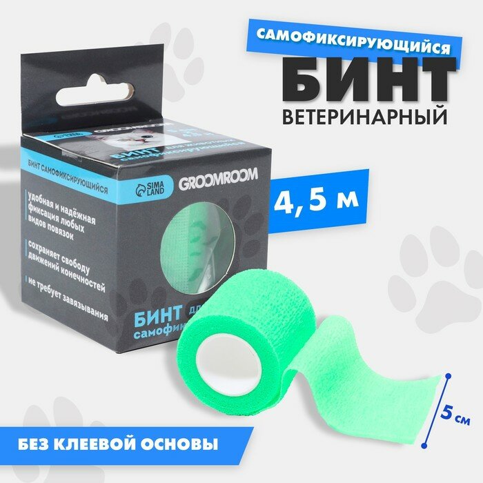 Купить Бинт самофиксирующийся разрывной Groomroom, 5 см х 4,5 м, зеленый