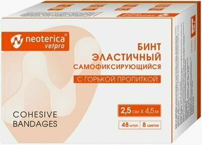 V515 NEOTERICA VETPRO Бинт эластичный самофиксирующийся с горькой пропиткой 8 цветов (2,5см*4,5м)*48 интересное: