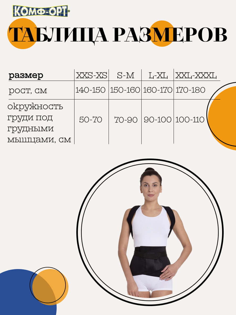 Корсет ортопедический грудо-пояснично-крестцовый Комф-Орт К-505, Размер XXL-XXXL, Рост, см 160-170