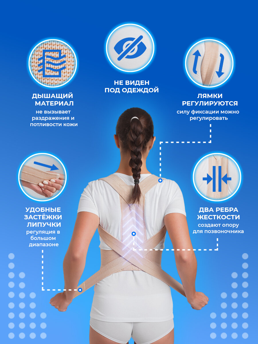 СохранитьКорректор осанки ортопедический Эласма - корсет для спины медицинский эластичный, регулируемый с жесткими вставками. Бежевый, 4 размер. интересное: