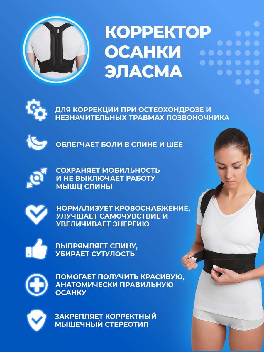 СохранитьКорректор осанки ортопедический Эласма - корсет для спины медицинский эластичный, регулируемый с жесткими вставками. Черный, 5 размер. интересное: