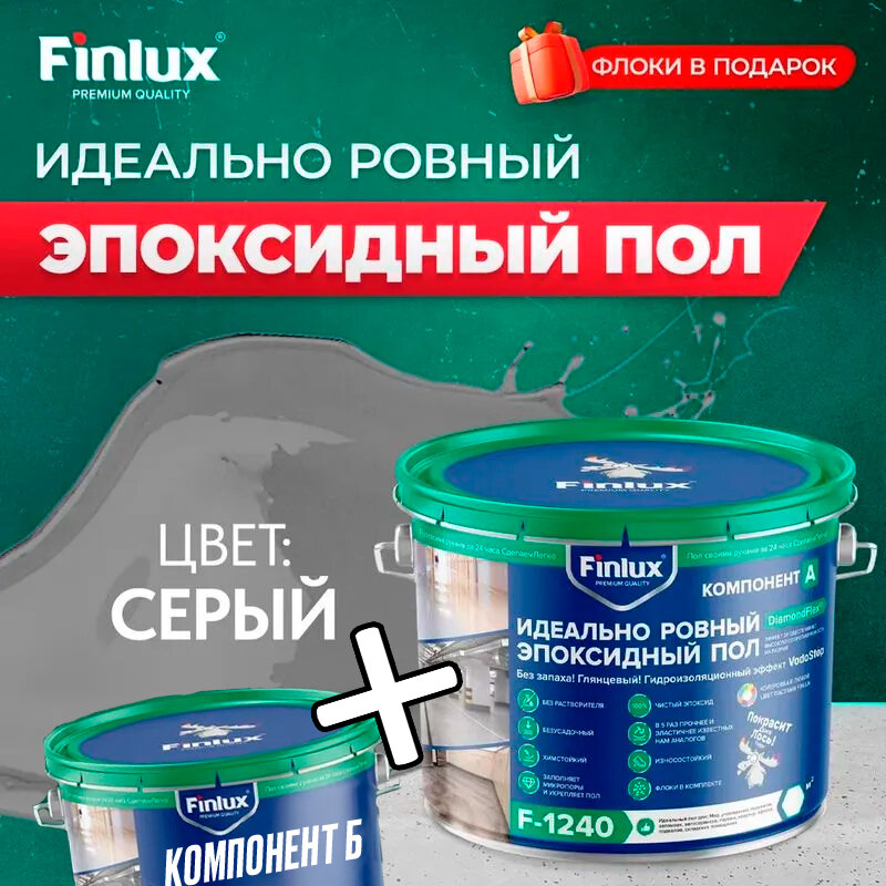 Эпоксидный наливной пол без запаха серый эмаль быстросохнущая с гидроизоляционным эффектом глянцевый Finlux F-1240 Platinum Финлюкс Ф-1240 Платинум интересное: