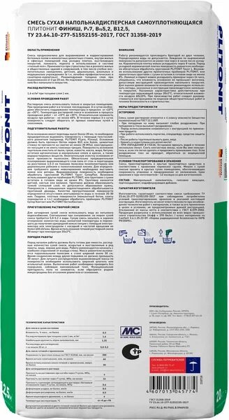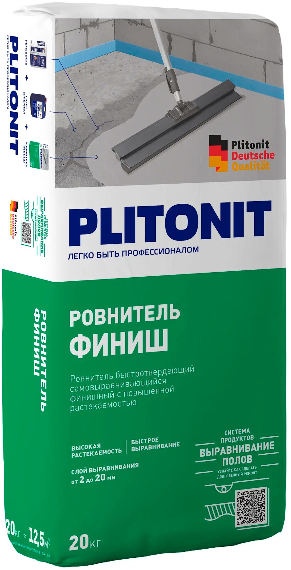 Ровнитель (наливной пол) финишный Plitonit Финиш самовыравнивающийся быстротвердеющий 20 кг