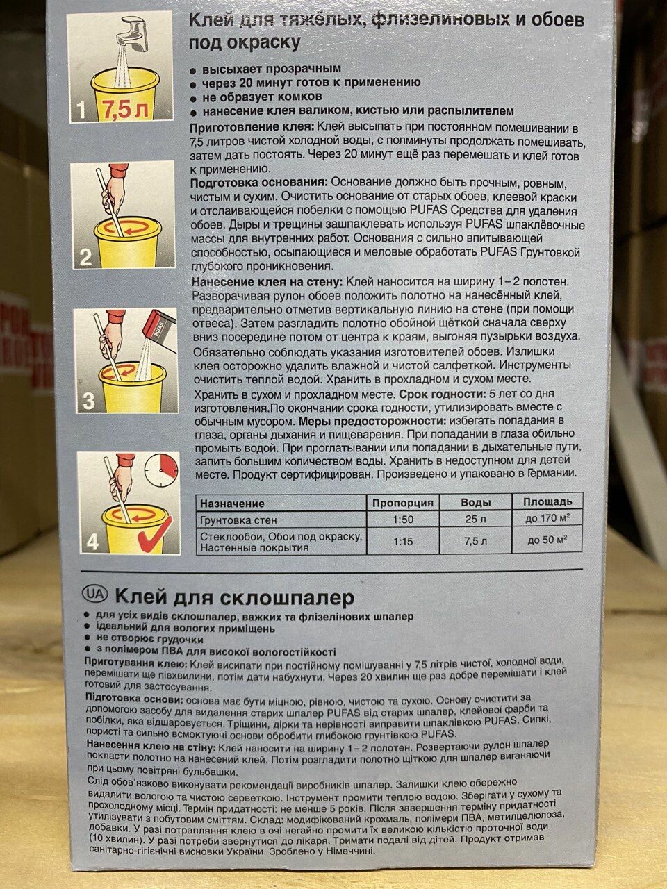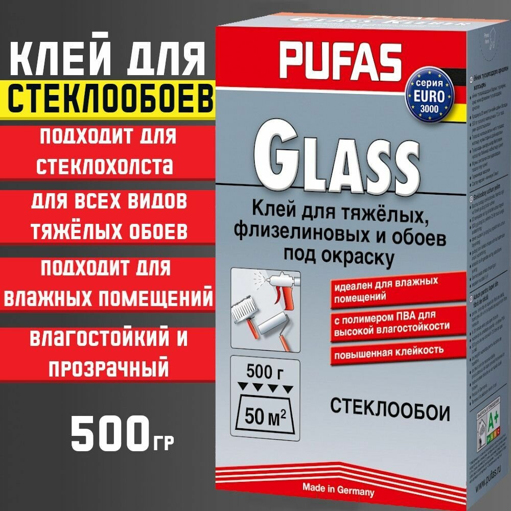 EURO 3000 Glass Клей для стеклообоев и обоев под окраску 500 g Pufas/ Пуфас интересное: