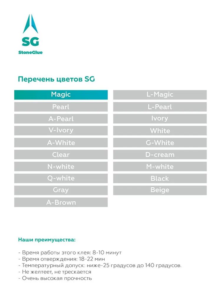 Купить Клей акриловый SG для искусственного камня, двухкомпонентный, цвет "Magic", объем 75мл