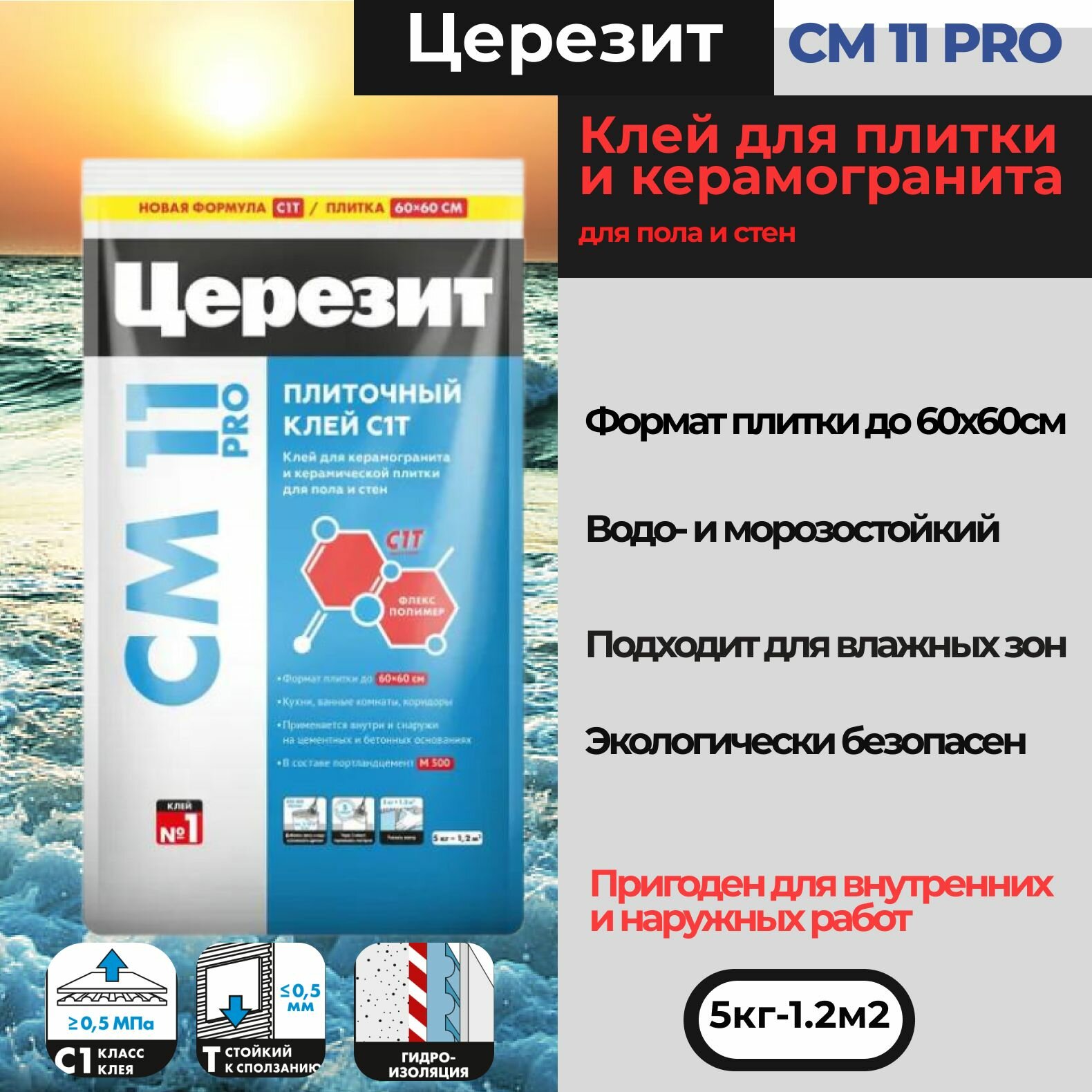 Клей для плитки и керамогранита Церезит CM 11 PRO, 5 кг интересное: