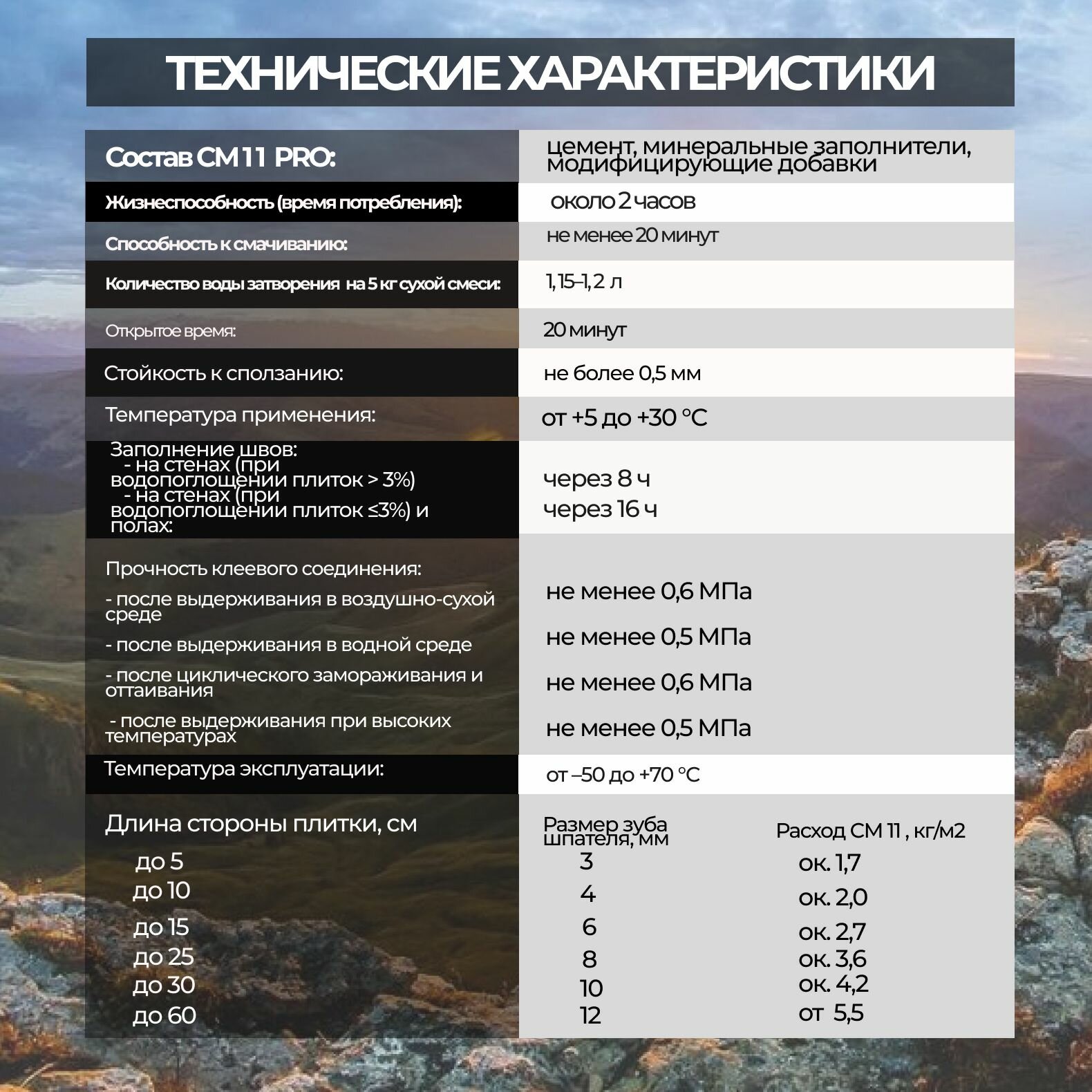 | Минимальная температура применения | 5 °C |