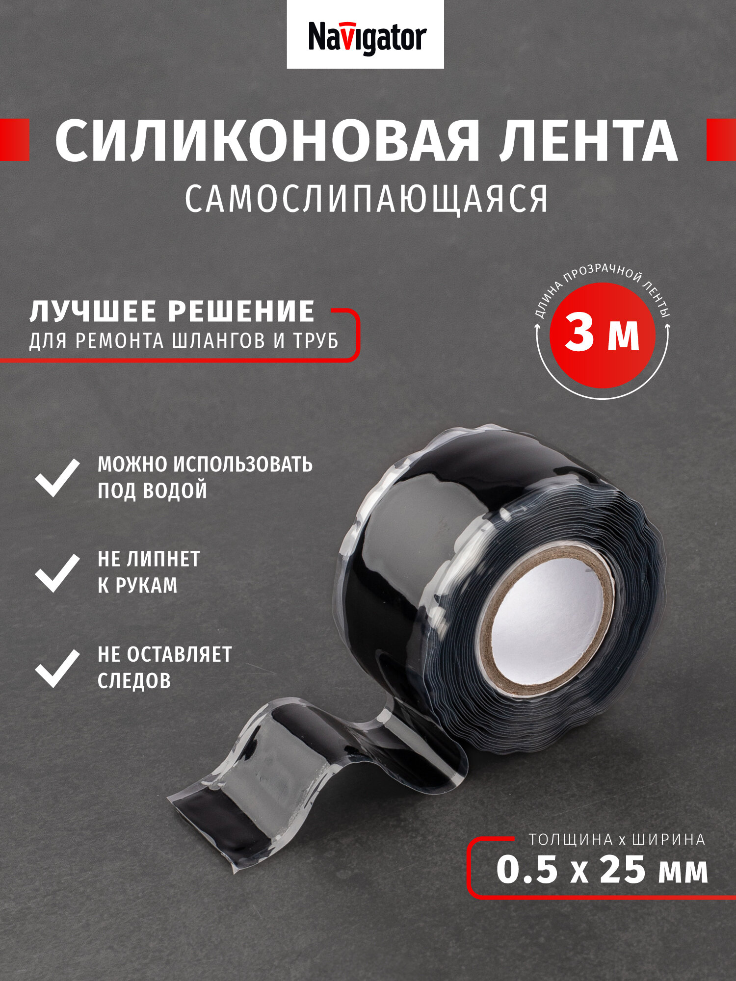 Купить Силиконовая лента самослипающаяся Navigator, черная 14 080, 3 м, черный