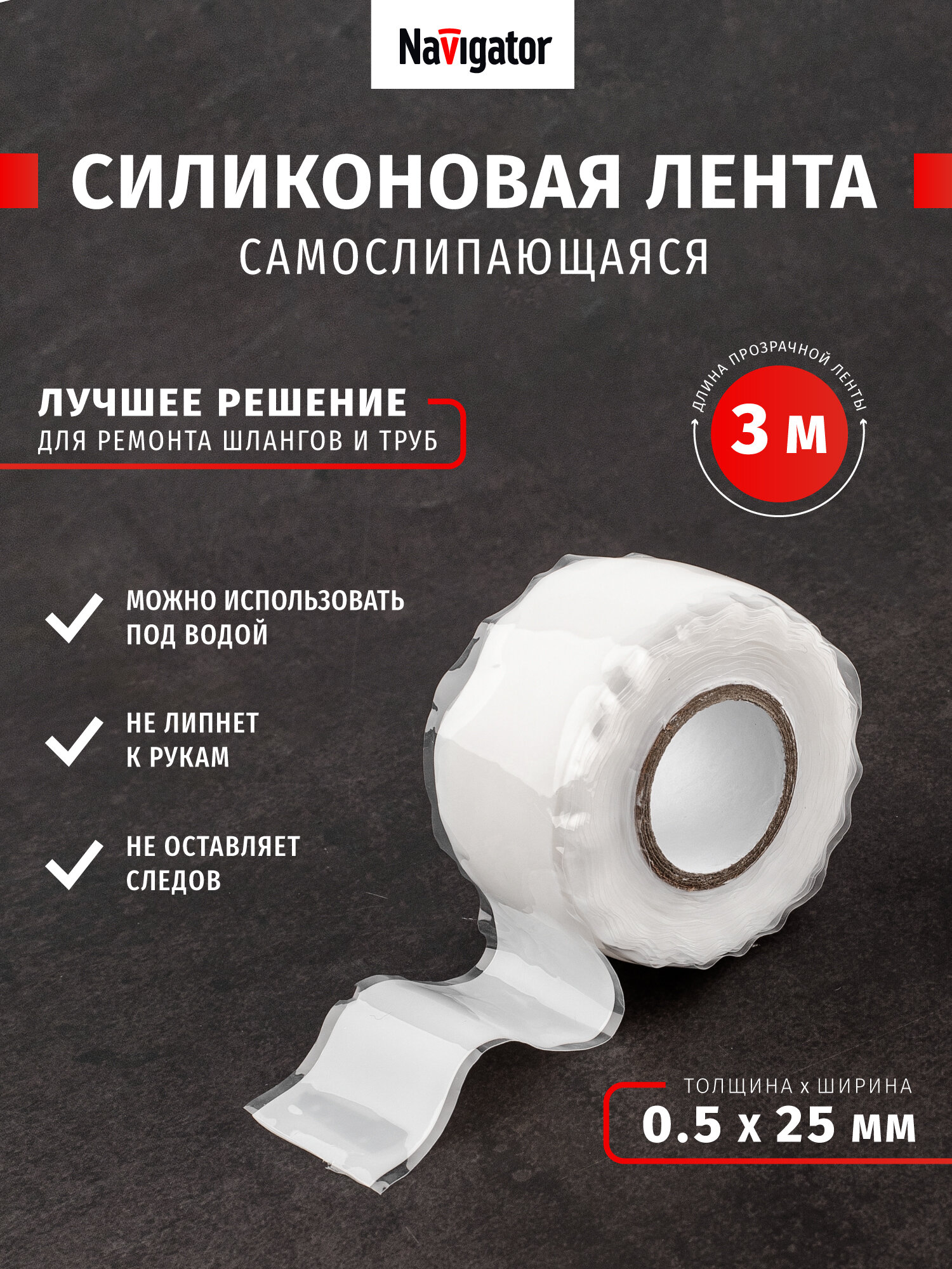Силиконовая лента самослипающаяся Navigator, черная 14 080, 3 м, черный