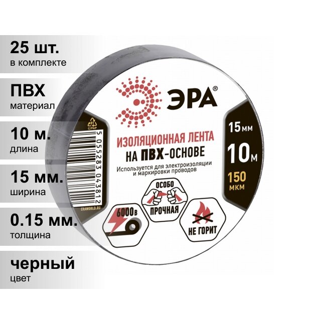 Купить (25 шт.) Изолента ПВХ черная 15мм 10м ЭРА