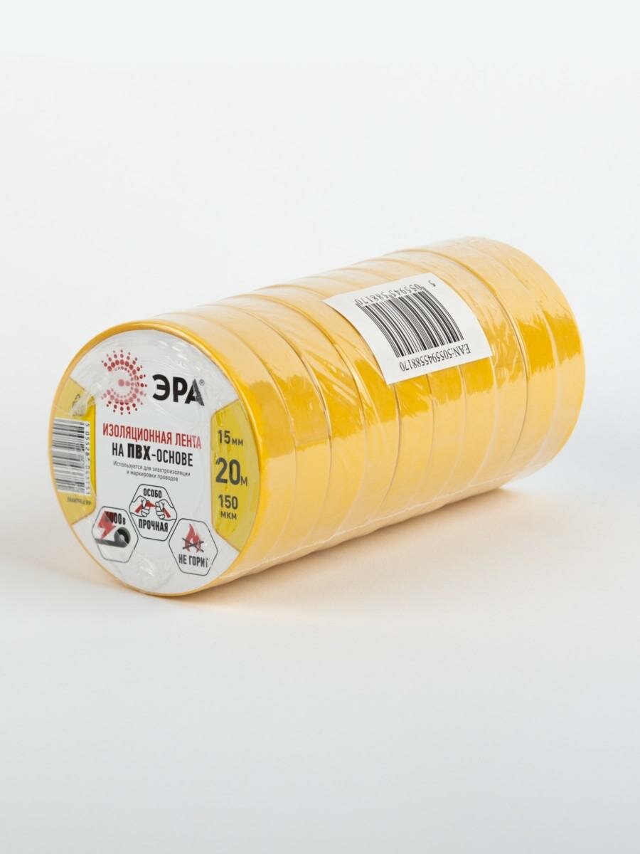 Купить ЭРА изолента ПВХ 15/20 желтая 0.15х15 мм, 20 м 190% растяж. 3751