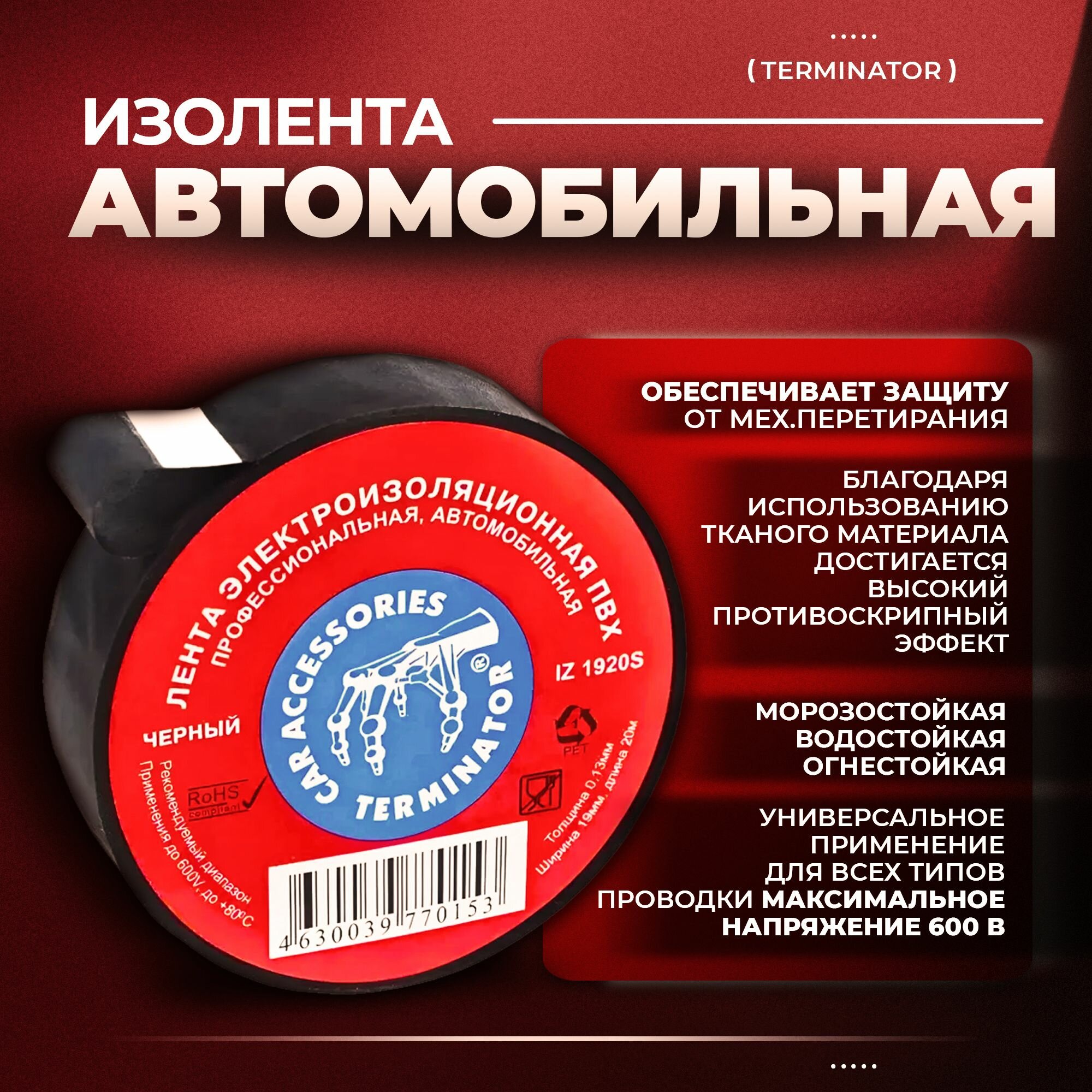 Изолента 19 мм*20 м "TERMINATOR" (черный)
