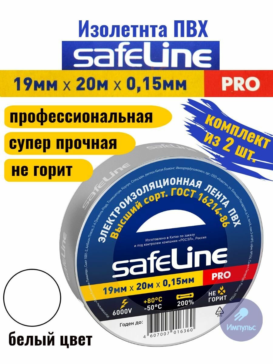 СохранитьИзолента ПВХ белая 19мм 20м Safeline PRO (комплект из 2 шт.) интересное: