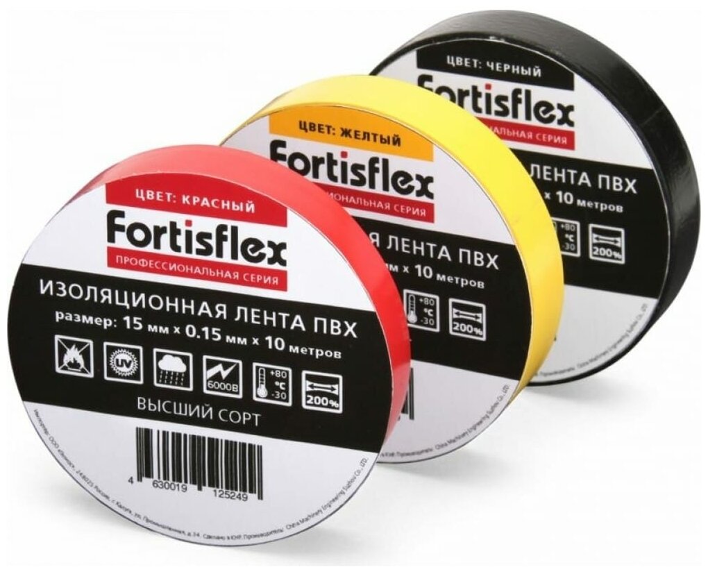 Изолента FORTISFLEX 71228 15 мм х 10 м, цвет черный