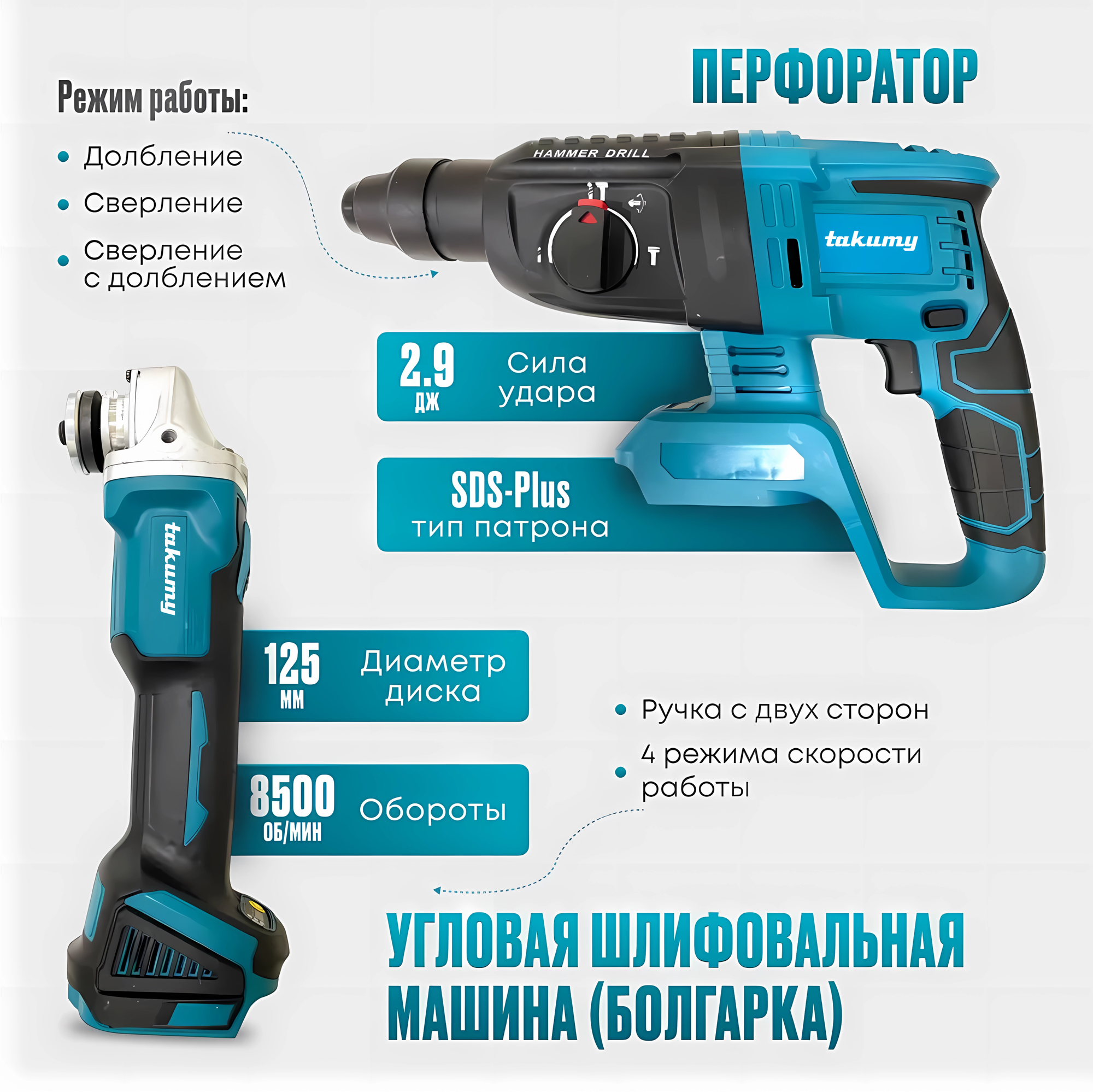 | Инструмент в наборе | гайковерт / дисковая пила / перфоратор / угловая шлифмашина / шуруповерт |