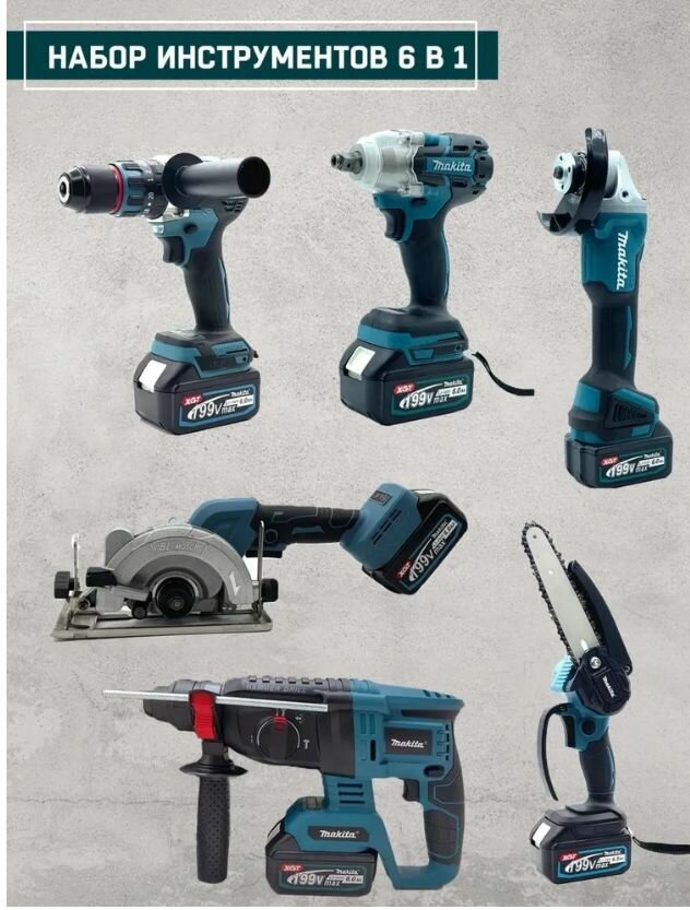 Набор аккумуляторного инструмента 6в1 с 4 АКБ интересное: