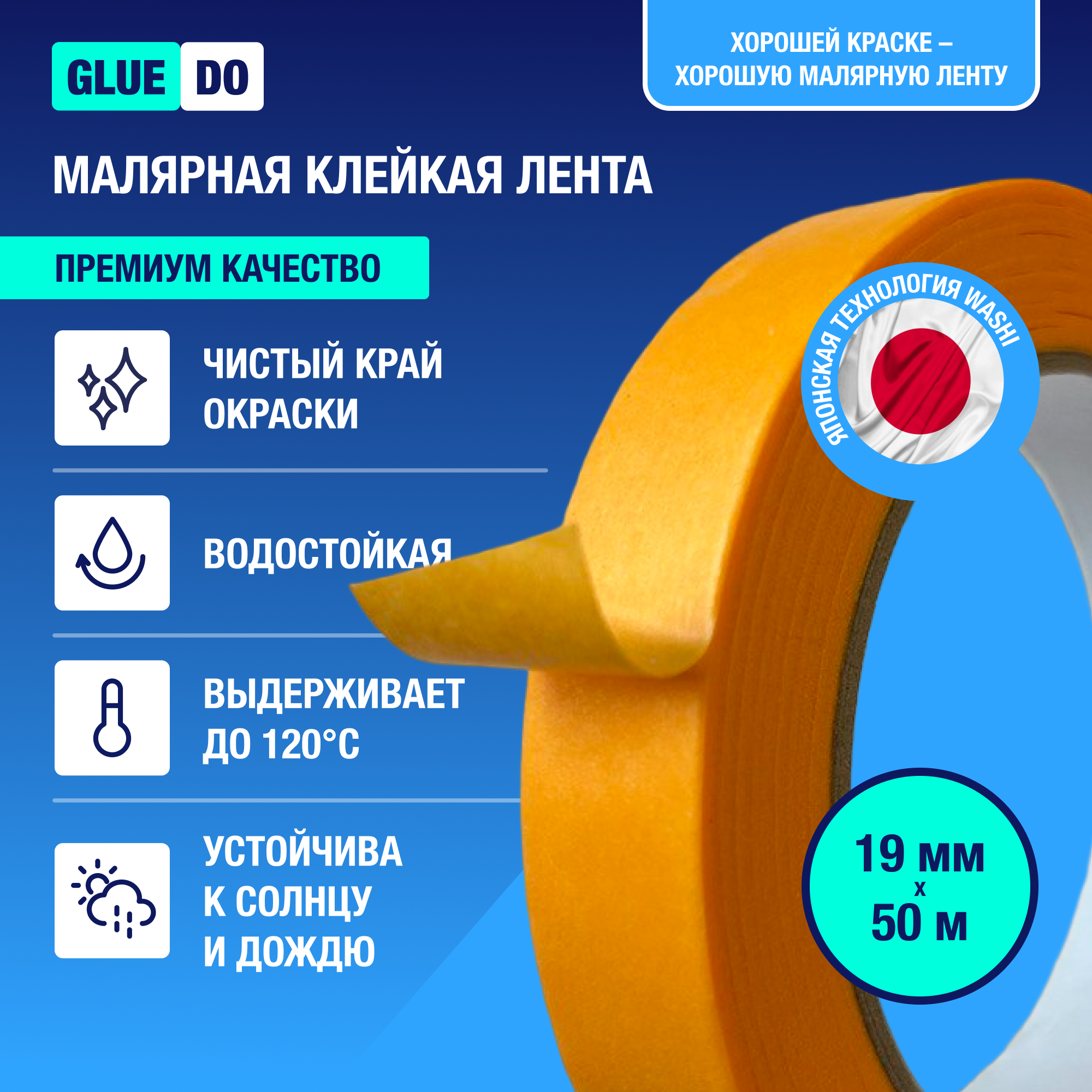 Купить Малярный скотч клейкая малярная лента бумажная водостойкая для авто и ремонта 19мм х 50м