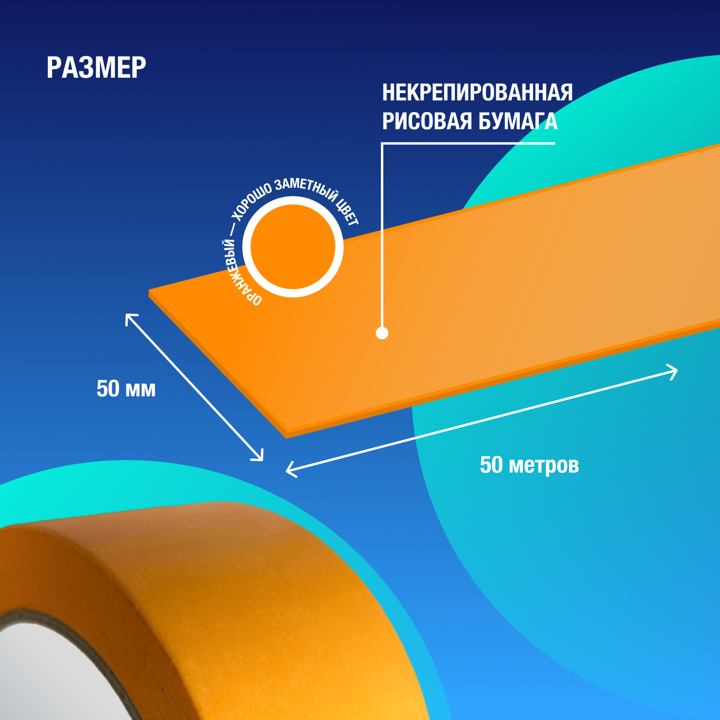 Купить малярный скотч клейкая малярная лента бумажная водостойкая для авто и ремонта 50мм х 50м 50ммХ50м