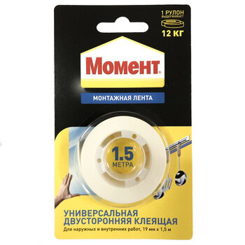 Купить Двусторонняя клеящая лента Монтаж, 1,5 м, до 12 кг
