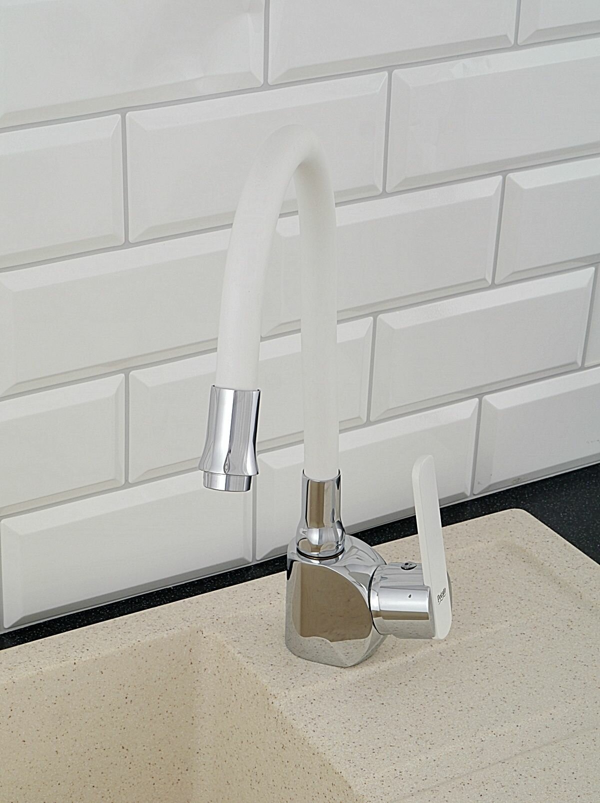 СохранитьСмеситель на кухню Potato P58238-7 с гибким белым изливом, картридж 35 мм, хром, крепление гайка интересное:
