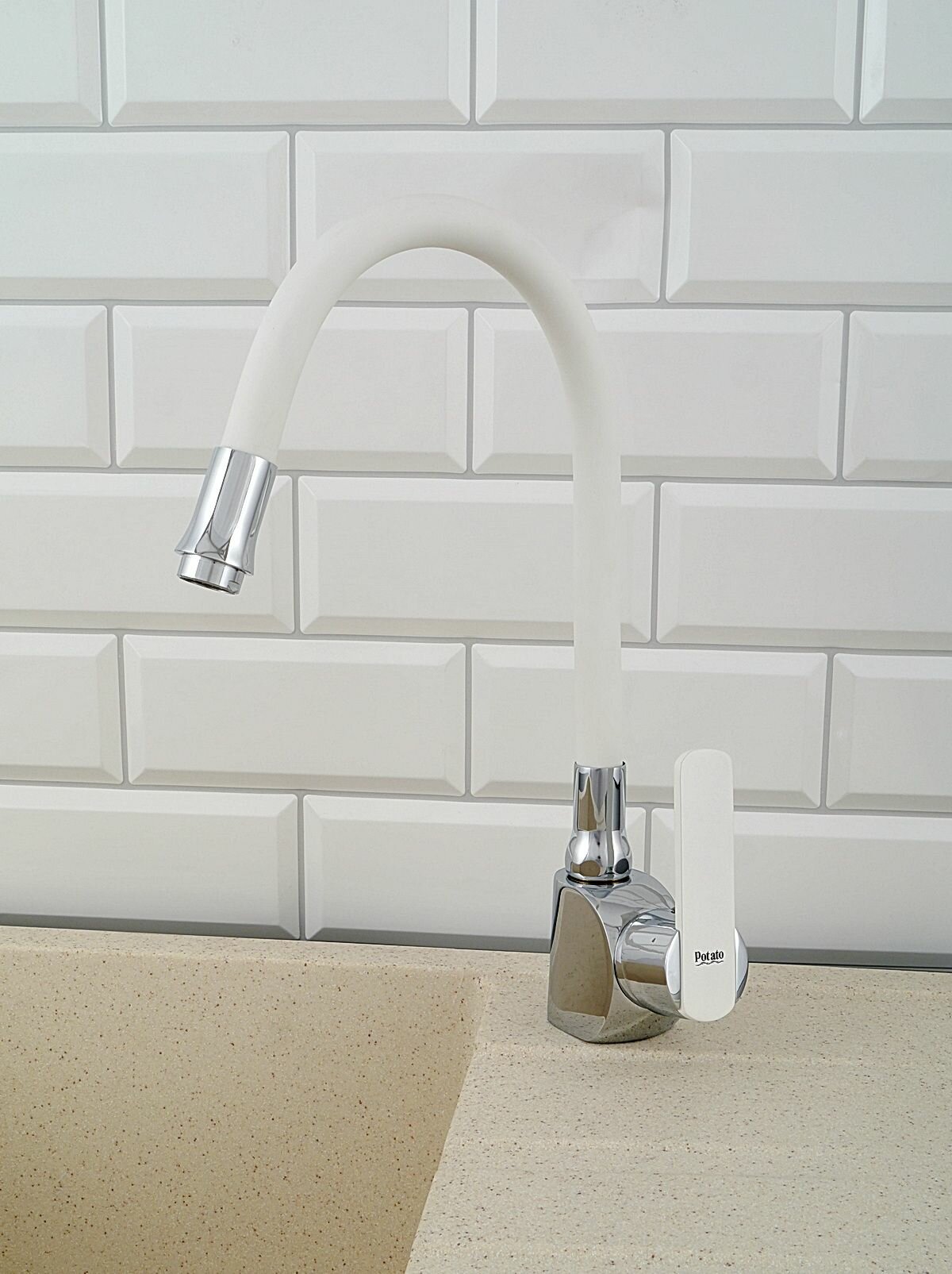 Смеситель для кухни Potato P58238-7 с гибким белым изливом, картридж 35 мм, хром, крепление гайка