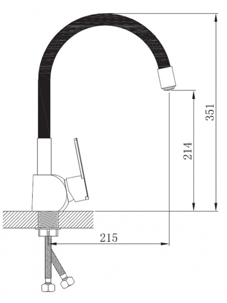 Смеситель на кухню Potato P58238-6 с гибким чёрным изливом, картридж 35 мм, хром, крепление гайка